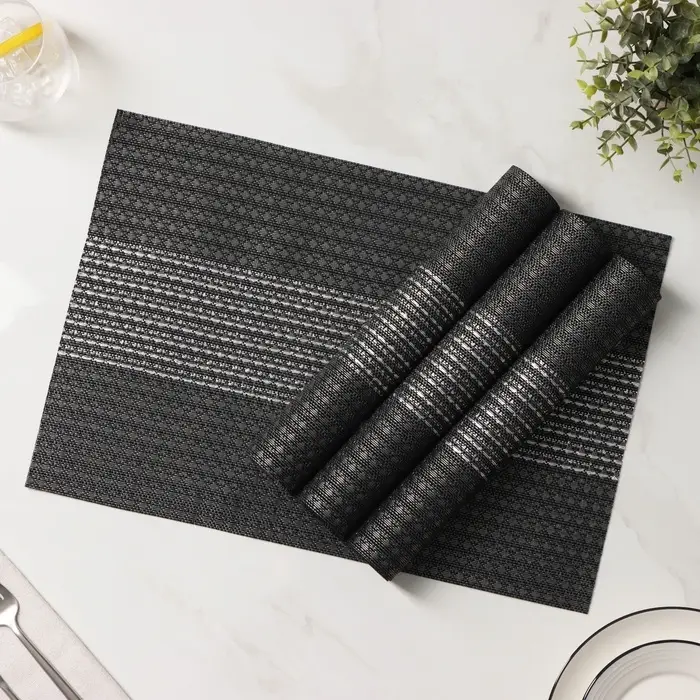 Салфетки сервировочные на стол Доляна «Сияние», 4 шт., 45×30 см, чёрные