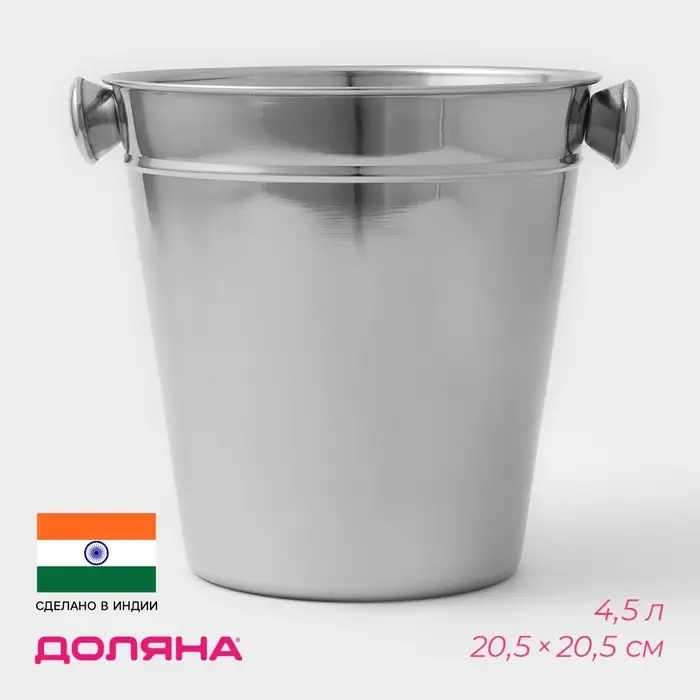 Ведро для льда Доляна, 4.5 л, 20.5×20.5 см, нержавеющая сталь, хромированное