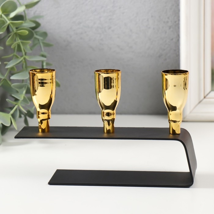 Подсвечник металл на 3 свечи "Деко" чёрный с золотом 15,2х4,7х11 см