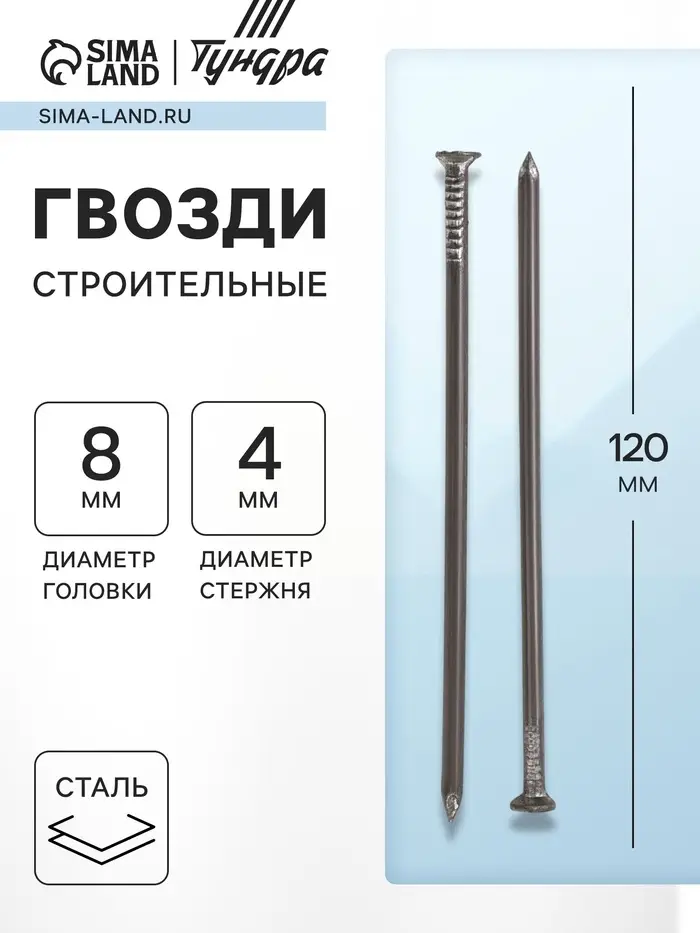 Гвозди ТУНДРА, строительные, ГОСТ 4028-63, без покрытия, 4×120 мм, 5 кг
