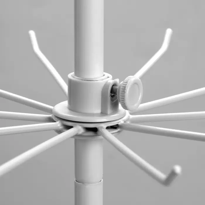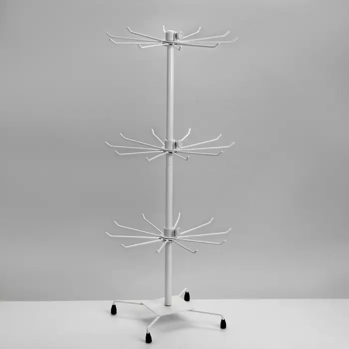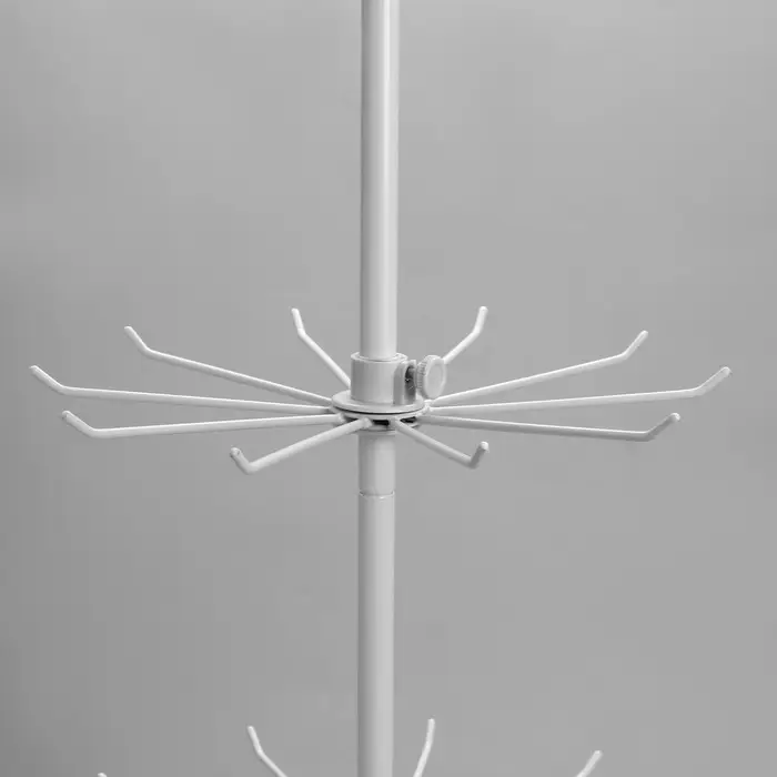 Создайте идеальный порядок в вашем доме или магазине с вертикальным стеллажом-вешалкой, состоящим из трёх этажей по десять крючков на каждом. Лаконичный белый цвет придаст интерьеру аккуратности и свежести, а плавное вращение значительно повысит удобство использования.