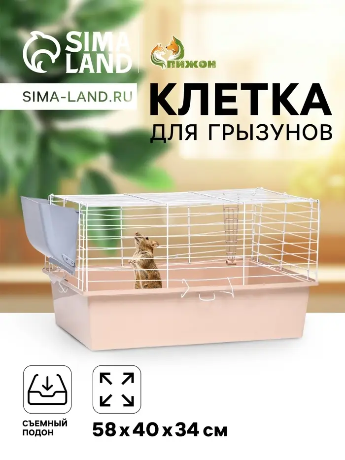 Клетка для грызунов «Пижон» №1 складная, 58×40×34 см, миска, 2 кормушки, бежевая