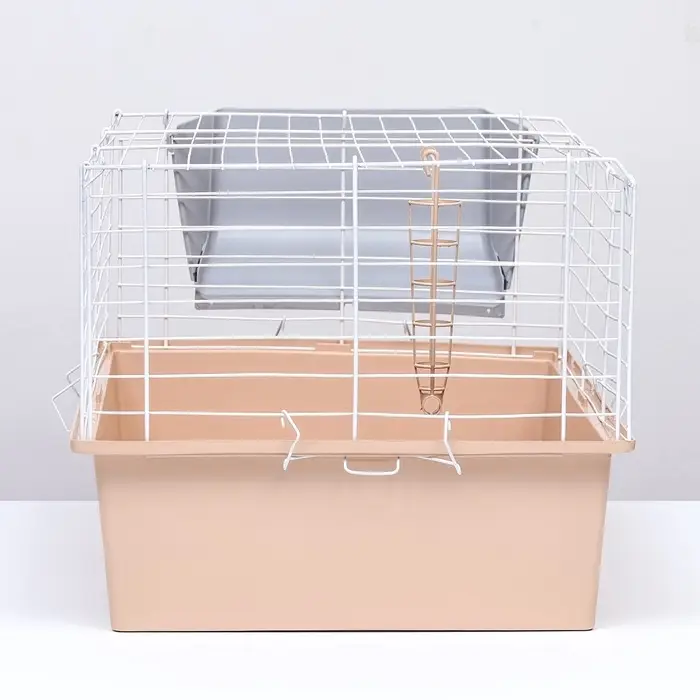 - Складная конструкция и лёгкий уход: пластиковый поддон легко освобождается для чистки, а сама клетка быстро разбирается при необходимости — удобно для перевозки или временного хранения.