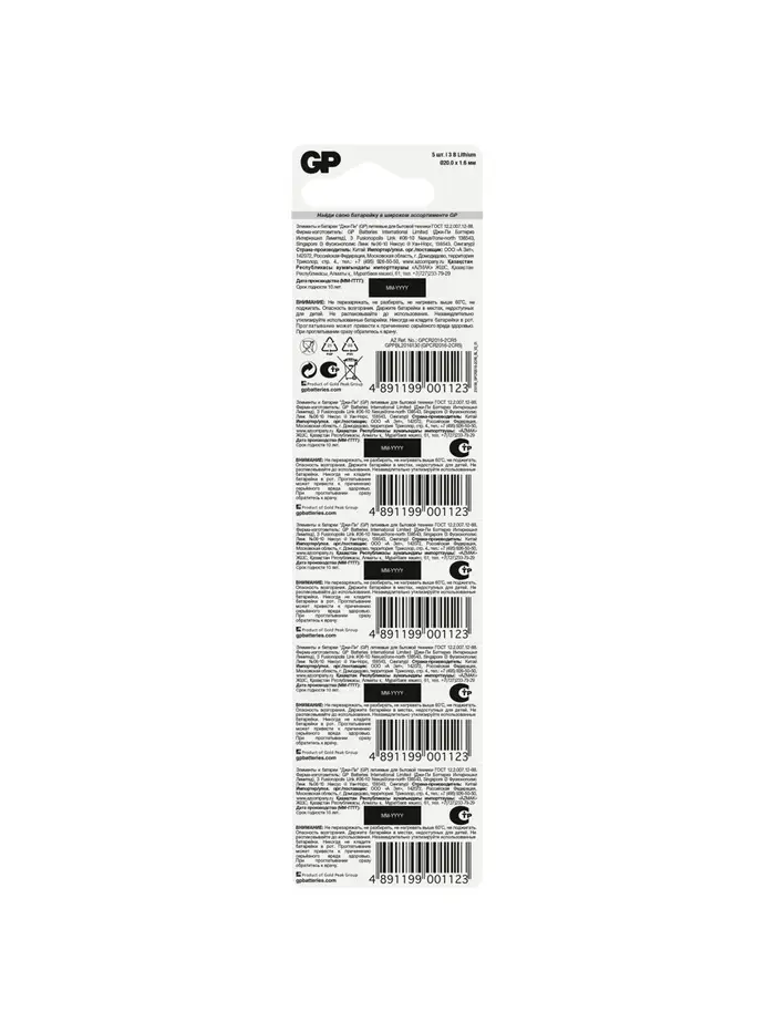 Дисковые батарейки GP изготовлены из лития высокой степени очистки, обеспечивающего большую энергетическую плотность. При емкости 90 мАч литиевые источники тока дают напряжение 3V – на порядок выше, чем у алкалиновых элементов.