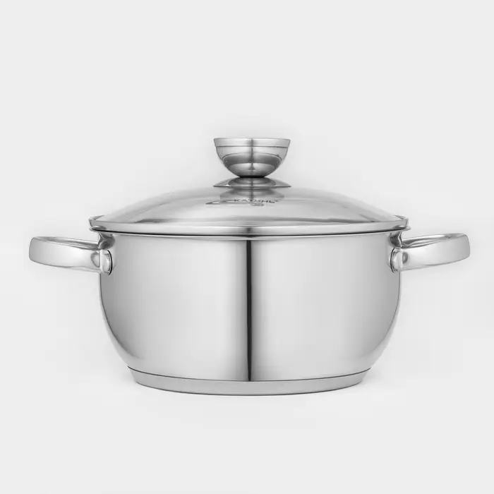 Кастрюля Доляна «Классика», 3 л, d=20 см, с крышкой, капсульное дно, нержавеющая сталь, хромированная
