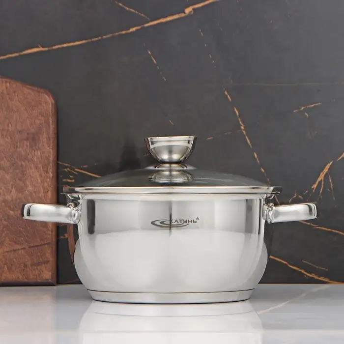 Современная кастрюля из нержавеющей стали — желанный подарок для каждого увлечённого повара. Изделие марки «Катунь» отвечает высоким стандартам качества и подходит для термической обработки любых пищевых продуктов.