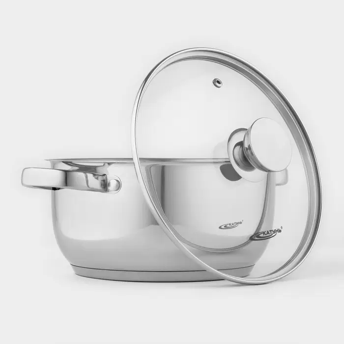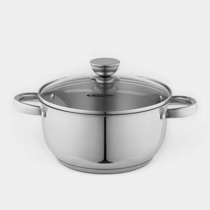Кастрюля Катунь «Гретта», 2.2 л, d=18 см, с крышкой, капсульное дно, индукция, нержавеющая сталь, AISI - 201, хромированная