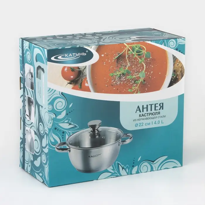 Кастрюля Катунь «Антея», 4 л, d=22 см, с крышкой, капсульное дно, индукция, нержавеющая сталь, AISI - 201, хромированная