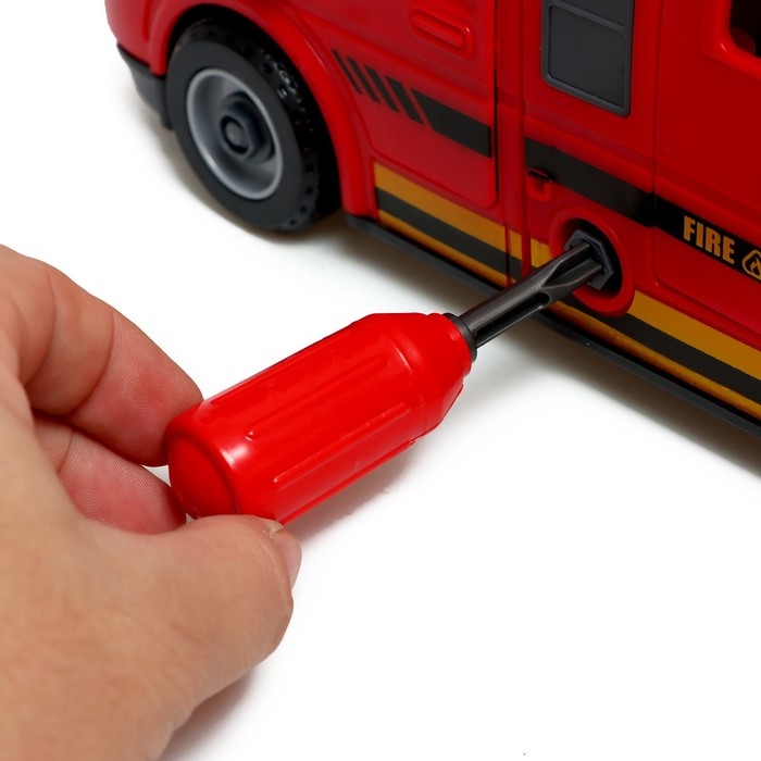 Конструктор винтовой «Пожарный фургон», свет, звук, инерция, 50 деталей