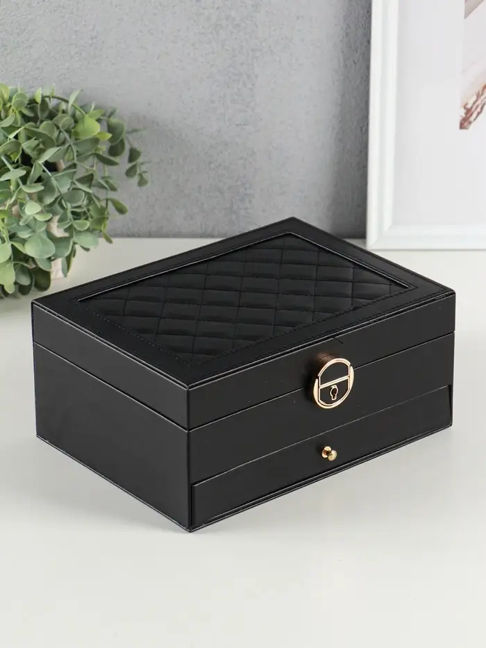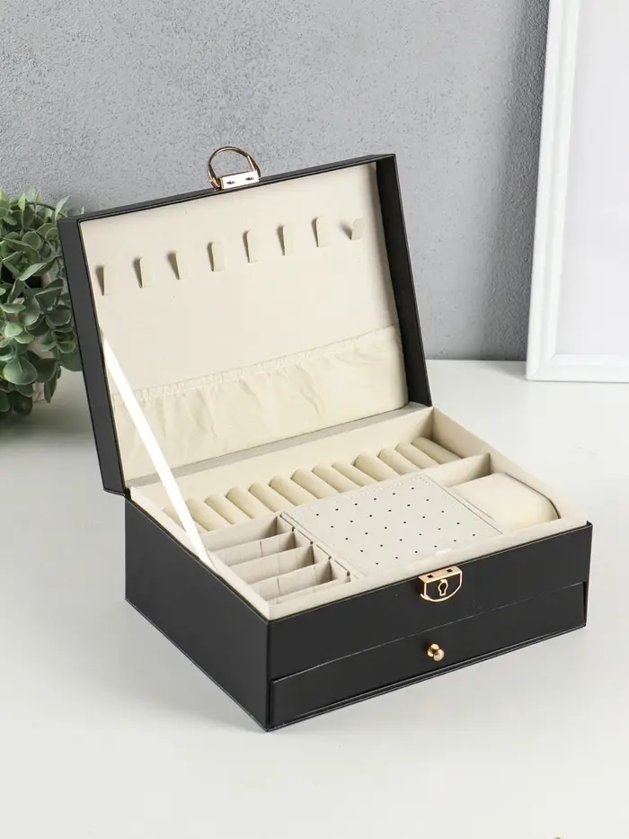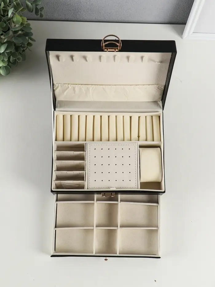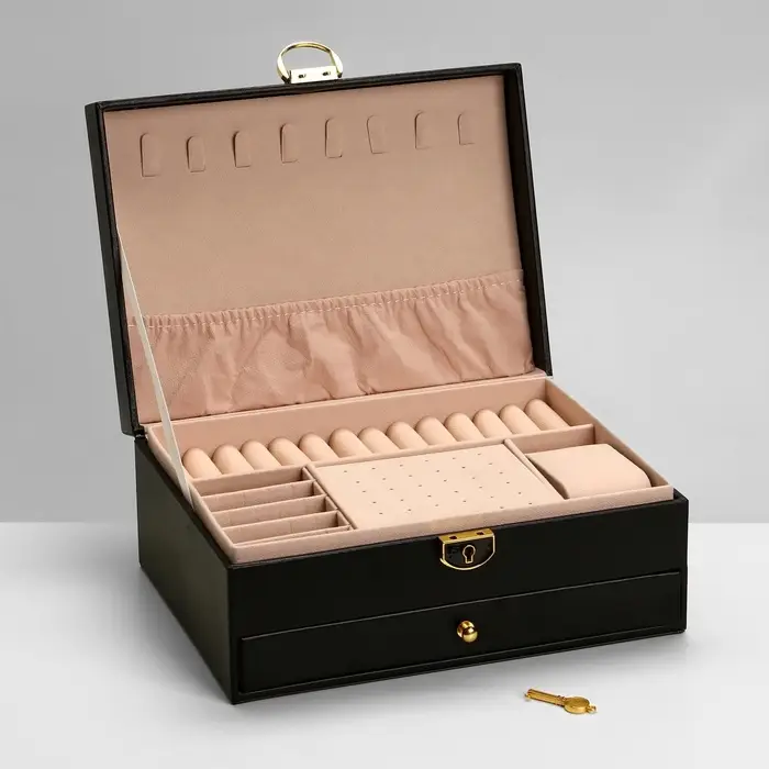 Шкатулка для украшений Netsai, 2 яруса, 17×23×10 см, чёрная