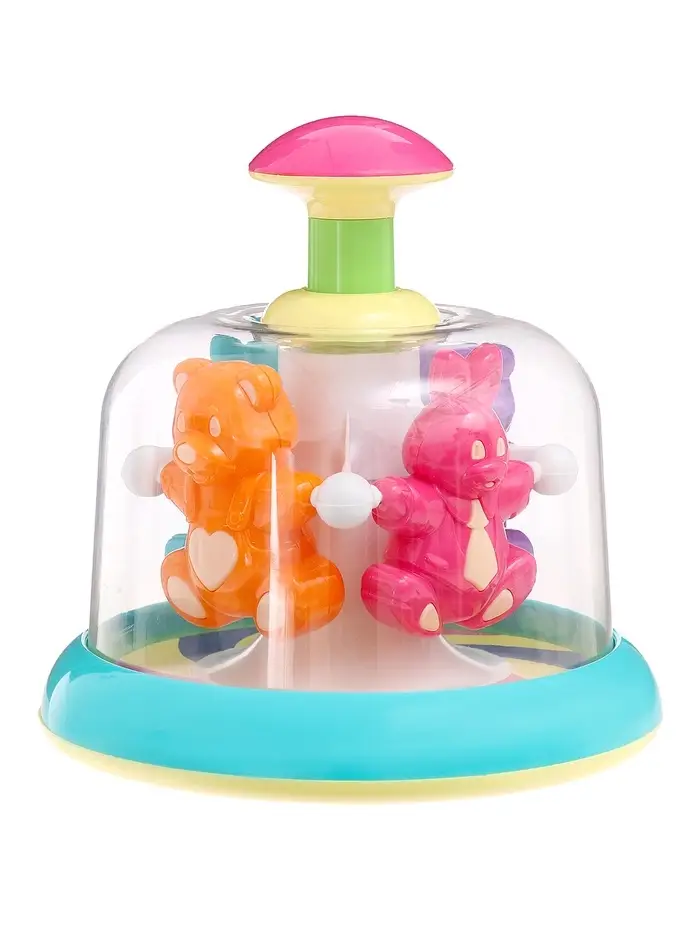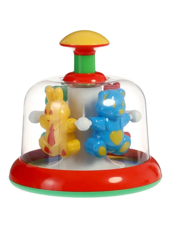 Юла-карусель «Лесная сказка» — это удивительная игрушка для малышей, которая привлечет их внимание и заинтересует своими возможностями. Благодаря простому механизму она легко заводится нажатием на рукоятку, что под силу даже младенцам. Когда ваш малыш касается юлы, запускается карусель под прозрачным куполом. Это позволяет наблюдать за движением красочных фигурок, а также влиять на их скорость и слушать звуки, которые издаёт игрушка.