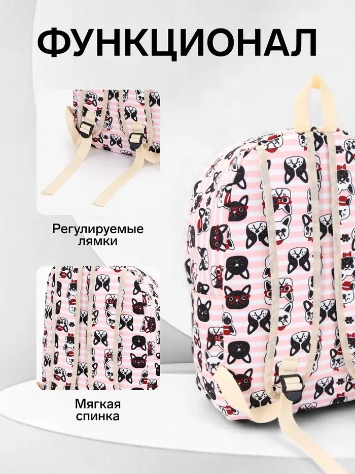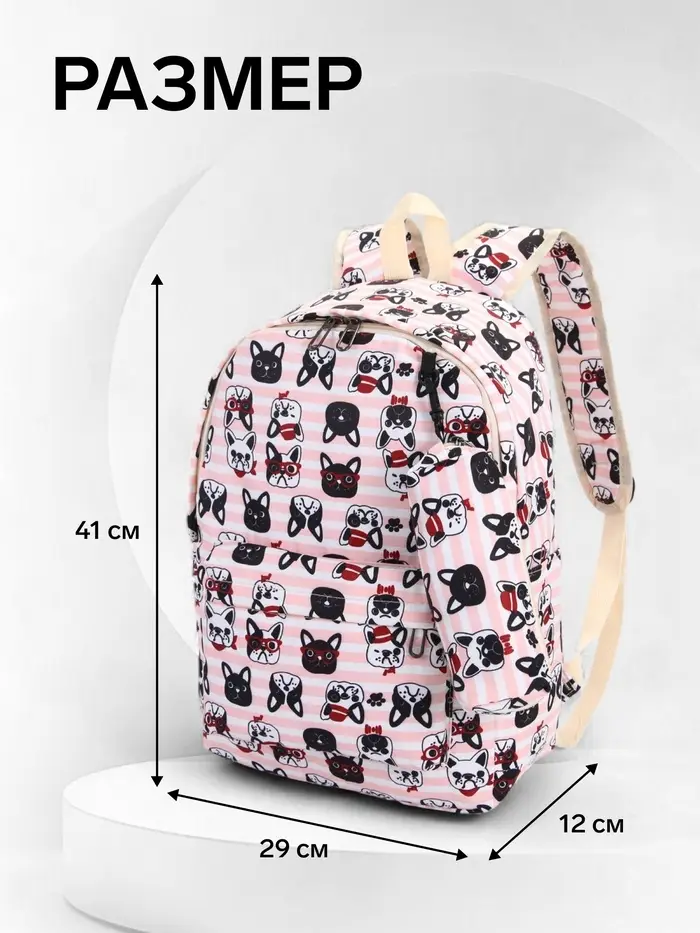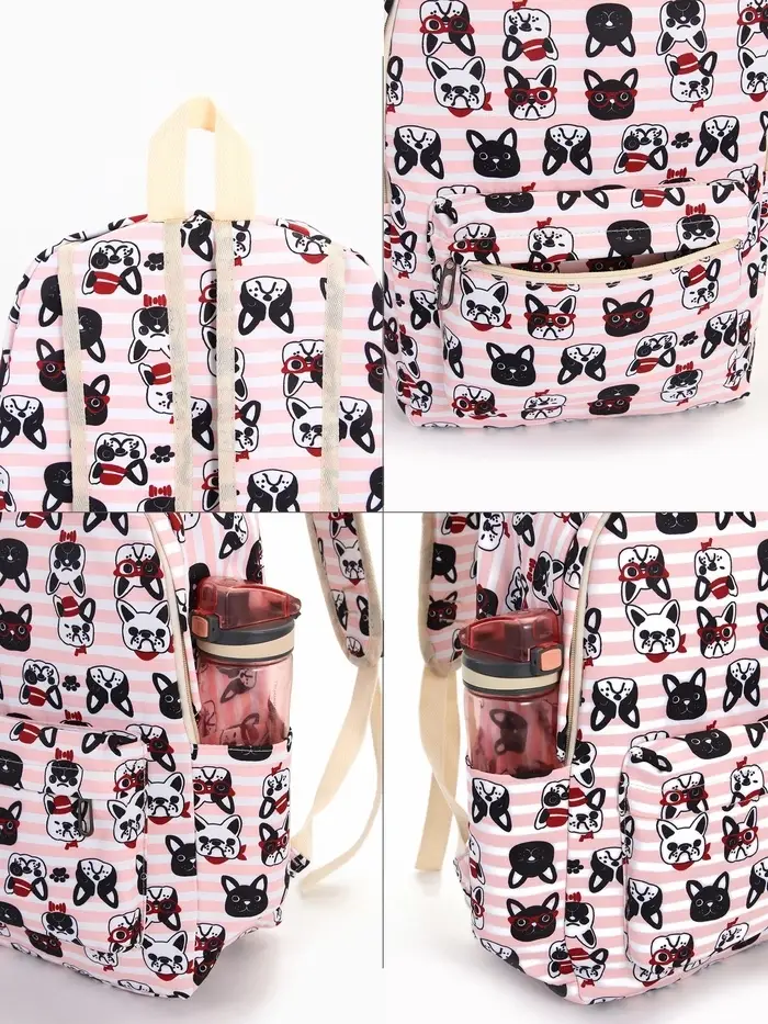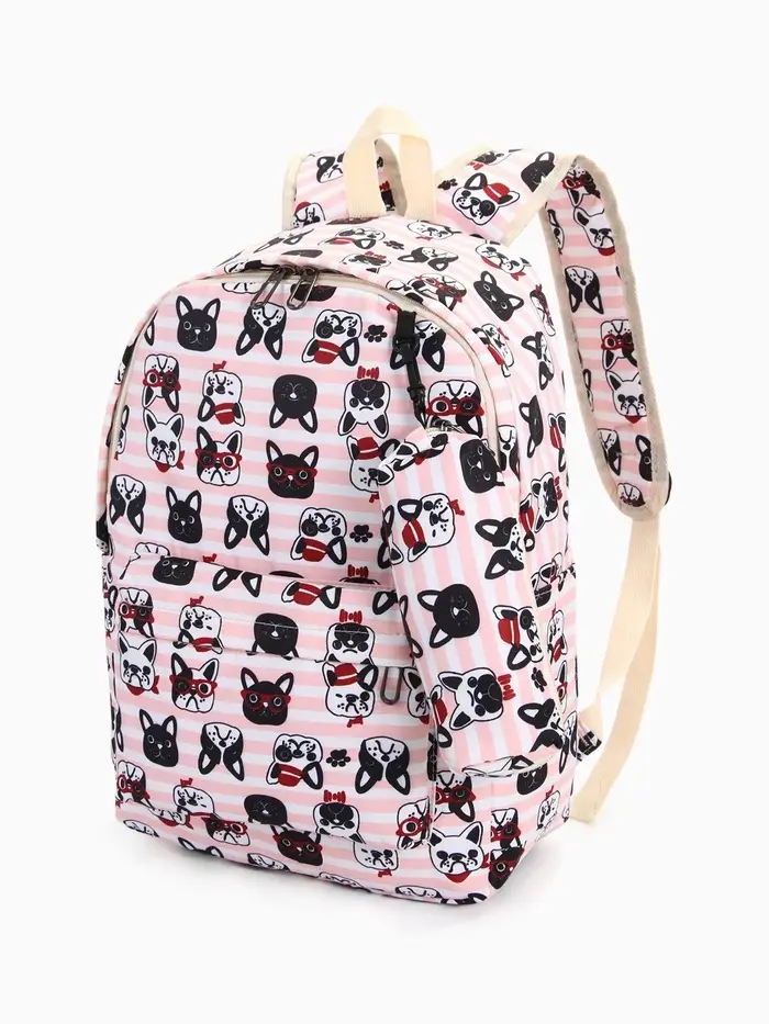 Рюкзак школьный «Собачки», с пеналом,29×12×41 см, розовый