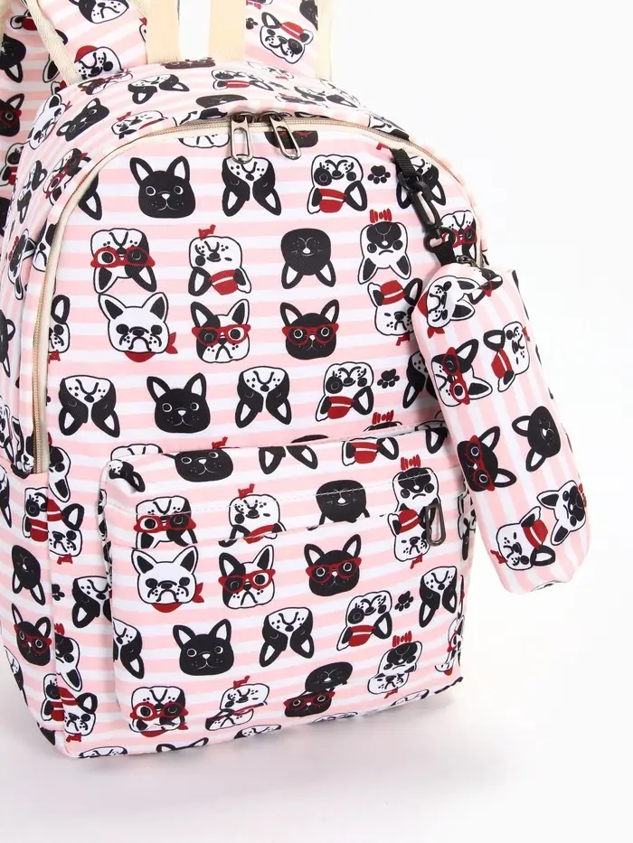 Этот розовый школьный набор с милой собакой станет верным спутником для учёбы и прогулок. Мягкий рюкзак и пенал в полоску созданы для девочек, которые ценят практичность и милый дизайн. Комплект идеально подходит для повседневной носки в школу и для активного отдыха.