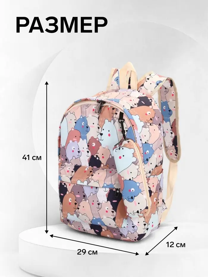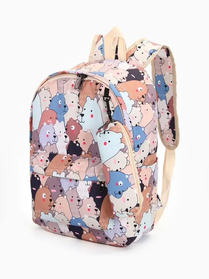 Рюкзак школьный «Мишки», с пеналом, 29×12×41 см, разноцветный