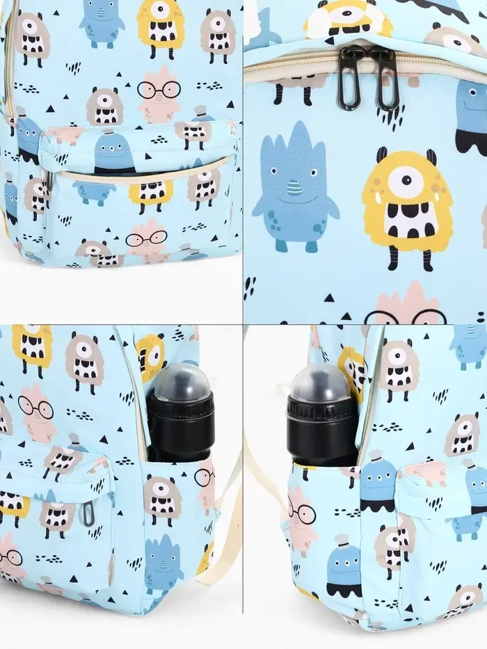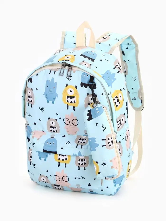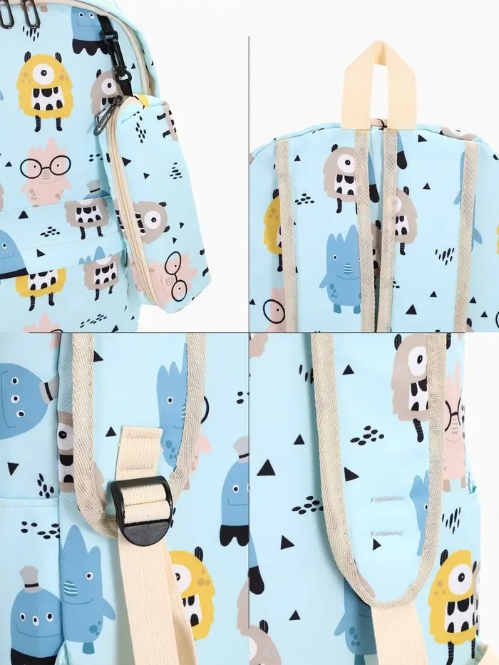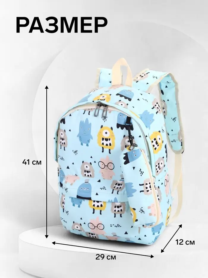 Рюкзак школьный «Монстрики», с пеналом, 29×12×41 см, голубой