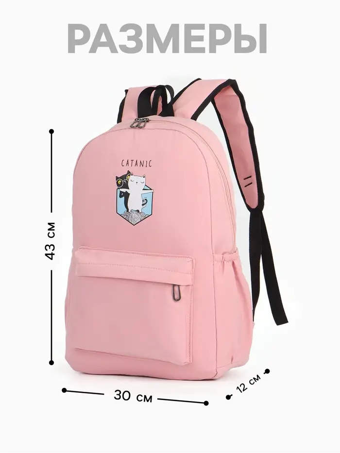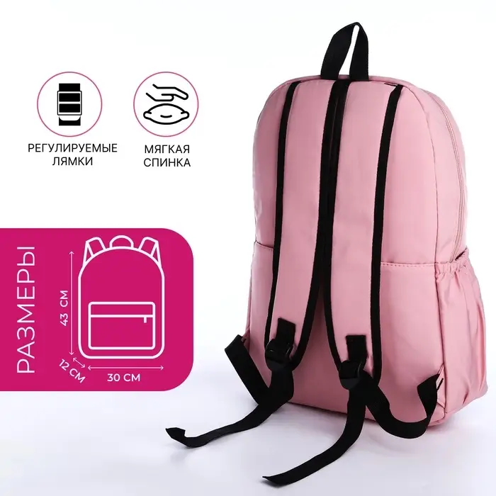 Рюкзак школьный на молнии, с карманами, с принтом, размер 30×12×43 см, розовый