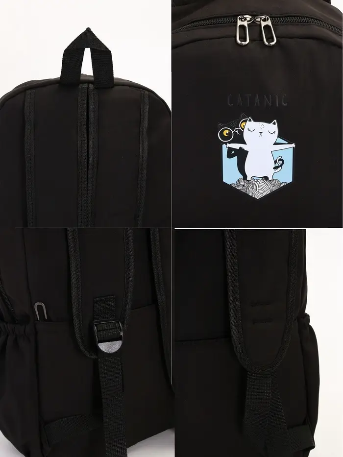 Этот школьный рюкзак с кошкой — надёжный спутник для учеников с 1 по 11 класс. Мягкая спинка и две регулируемые лямки создают комфорт даже при полной загрузке. Чёрный цвет и классический дизайн с ярким принтом делают его универсальным выбором для мальчиков и девочек.