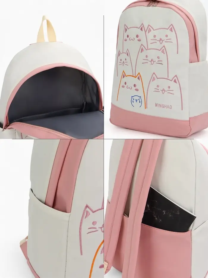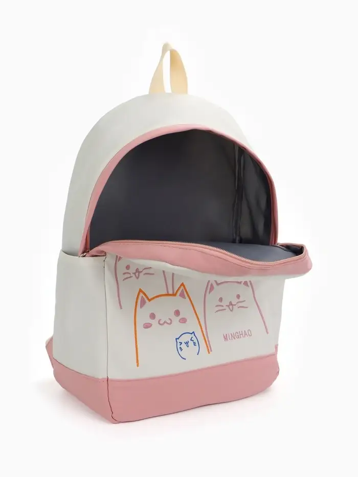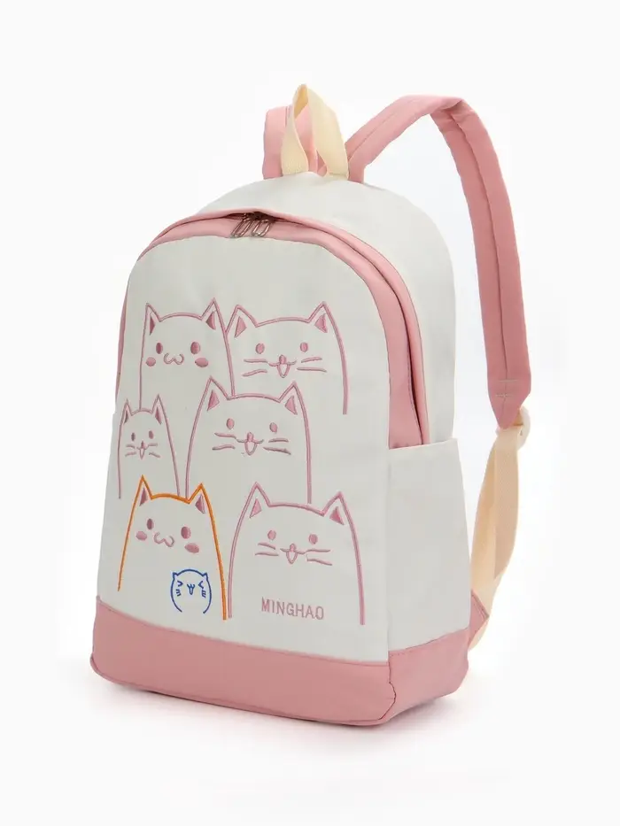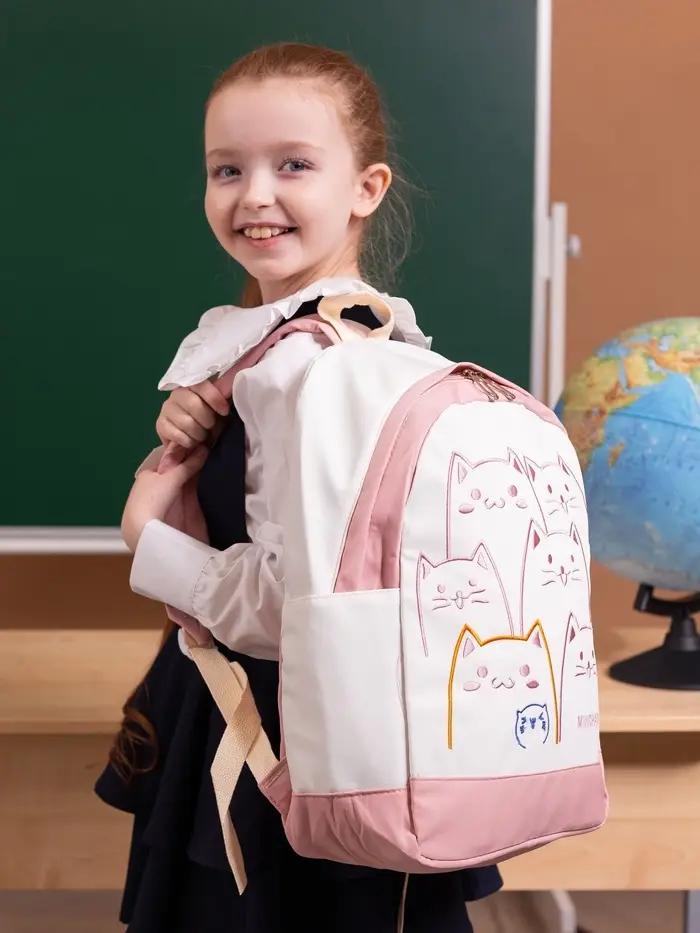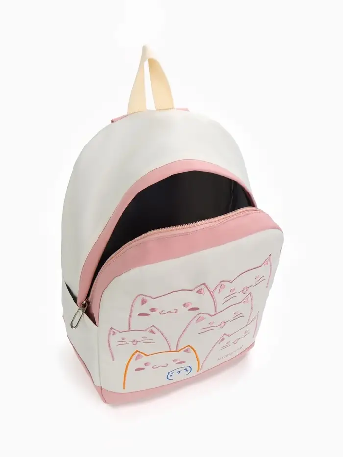 - Нежный бело-розовый дизайн с милым котёнком понравится каждой школьнице.