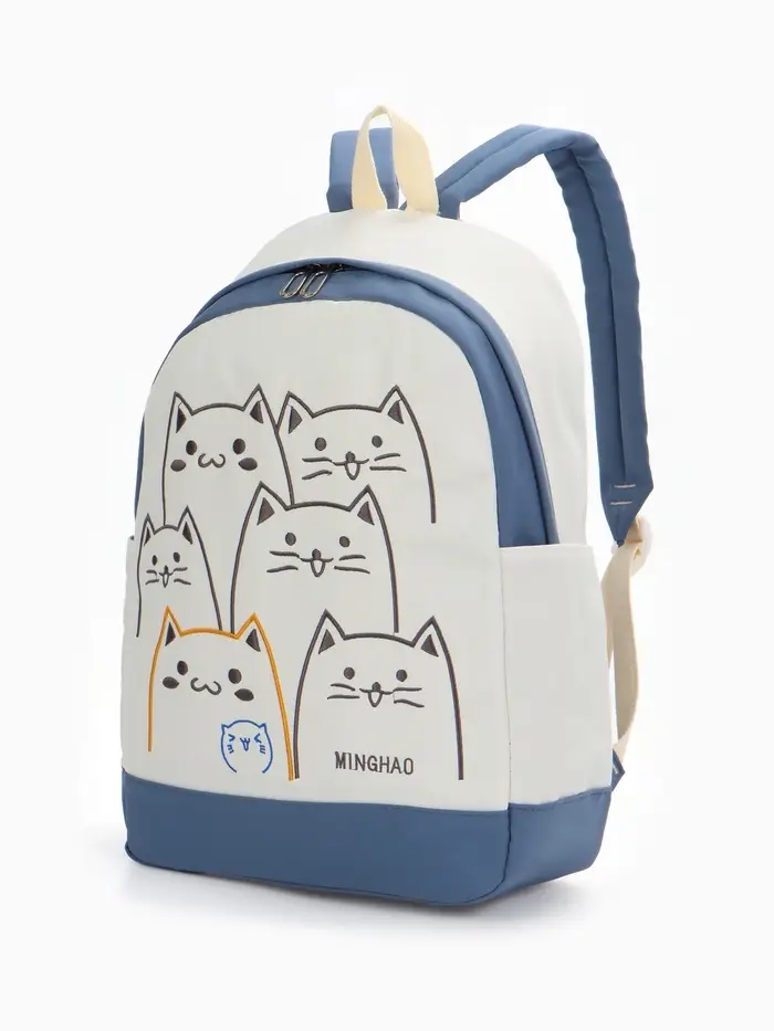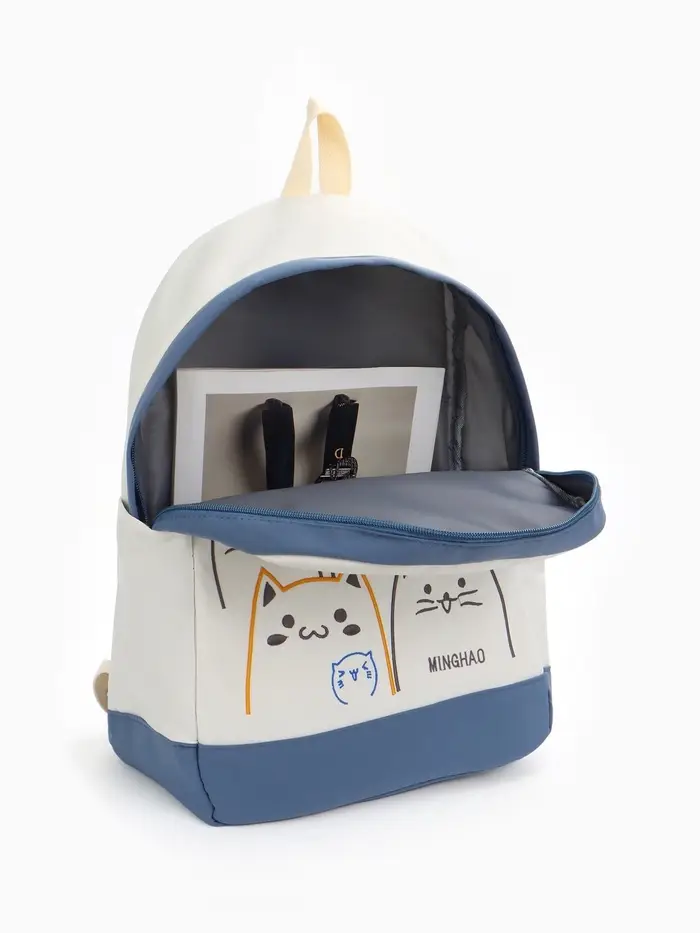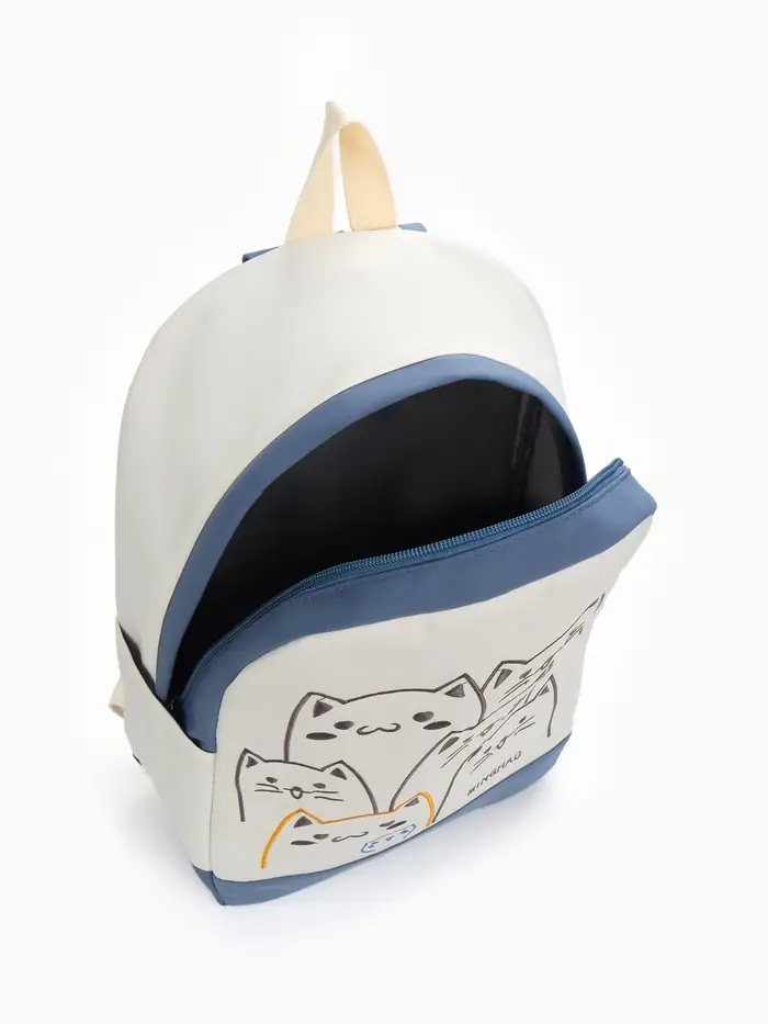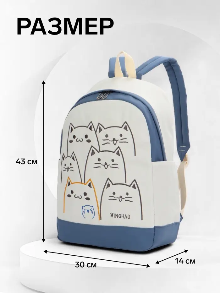Этот школьный рюкзак с котиком — надёжный спутник для ученицы с первого по одиннадцатый класс. Мягкая спинка и регулируемые лямки создают комфорт даже при полной загрузке тетрадями и учебниками. Объём в 15-20 литров вмещает всё необходимое для учёбы, а классический дизайн в бело-синей гамме с милым рисунком делает его стильным аксессуаром.