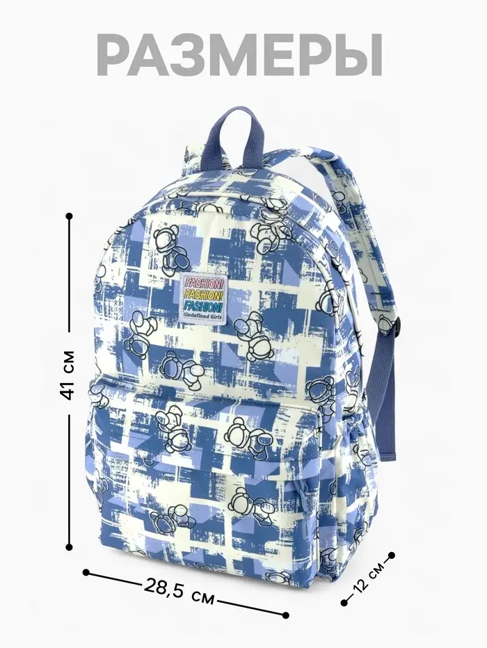 Рюкзак школьный на молнии, с карманами, с принтом, размер 28.5×12×41 см, синий