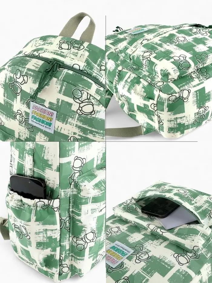 Этот зелёный школьный рюкзак с принтом — надёжный спутник для учеников средней и старшей школы. Его компактный размер и продуманная конструкция отвечают ежедневным потребностям в учёбе. Мягкая спинка и регулируемые лямки создают комфорт даже при полной загрузке, а классический дизайн в клетку с изображением медведя подчеркнёт индивидуальный стиль.
