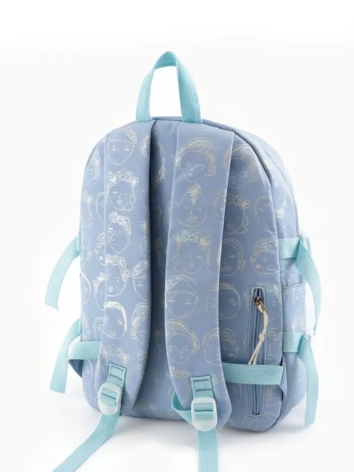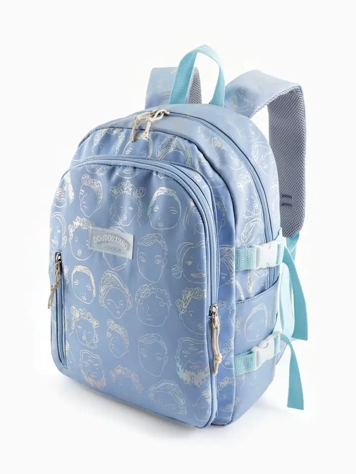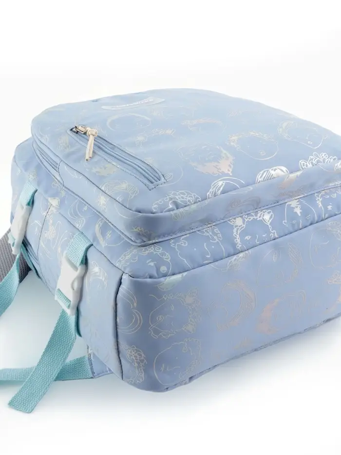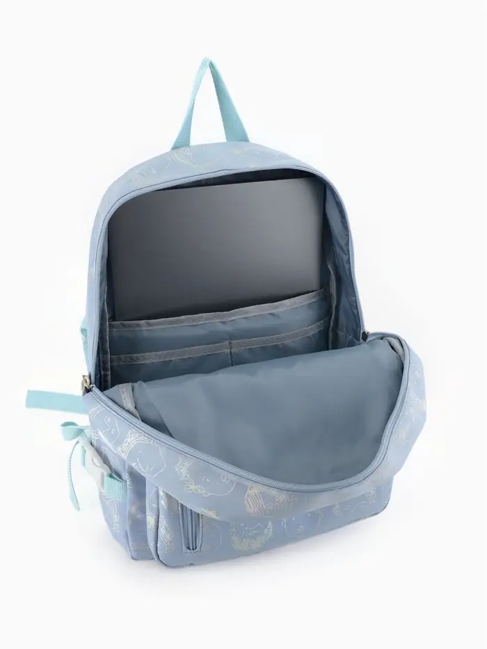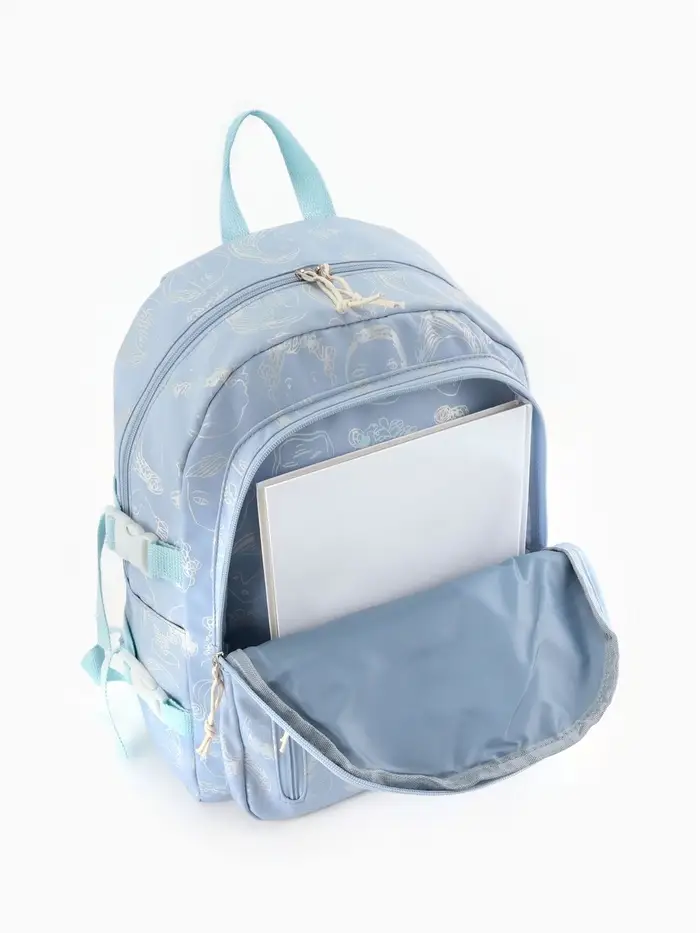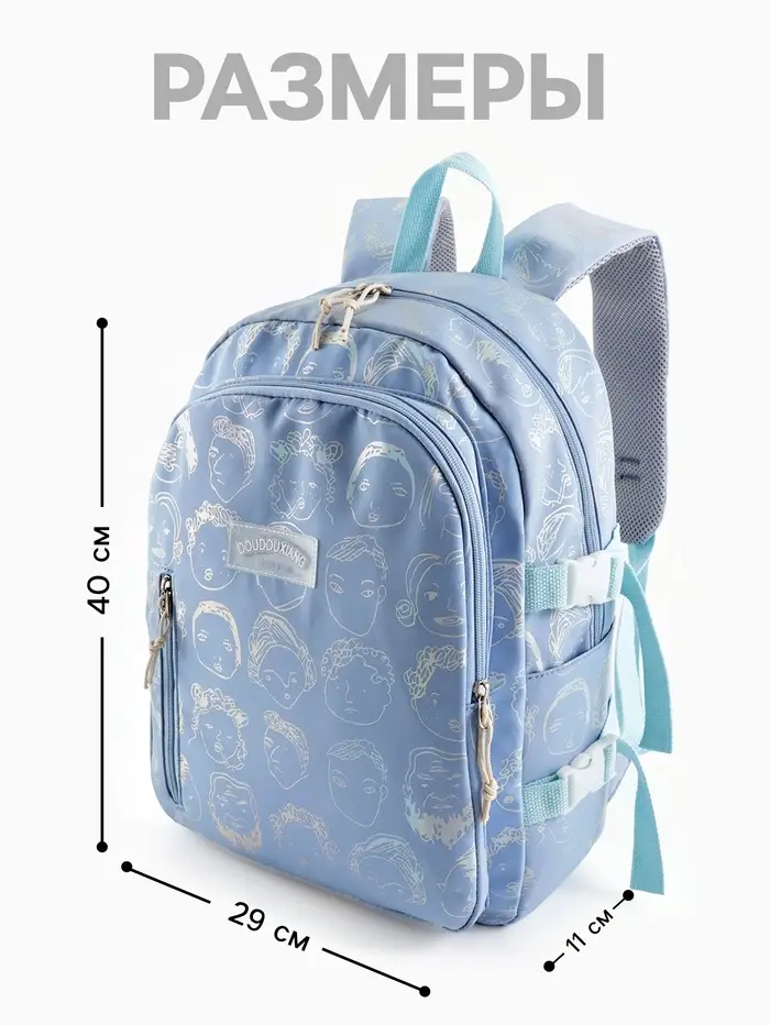 Этот голубой школьный рюкзак — надёжный спутник для учениц с первого по одиннадцатый класс. Он создан, чтобы каждый учебный день был организованным и комфортным. Мягкая спинка с анатомическим профилем равномерно распределяет нагрузку, заботясь о здоровой осанке. Вместительное основное отделение с надёжной молнией легко вместит всё необходимое: учебники, папки и пенал.