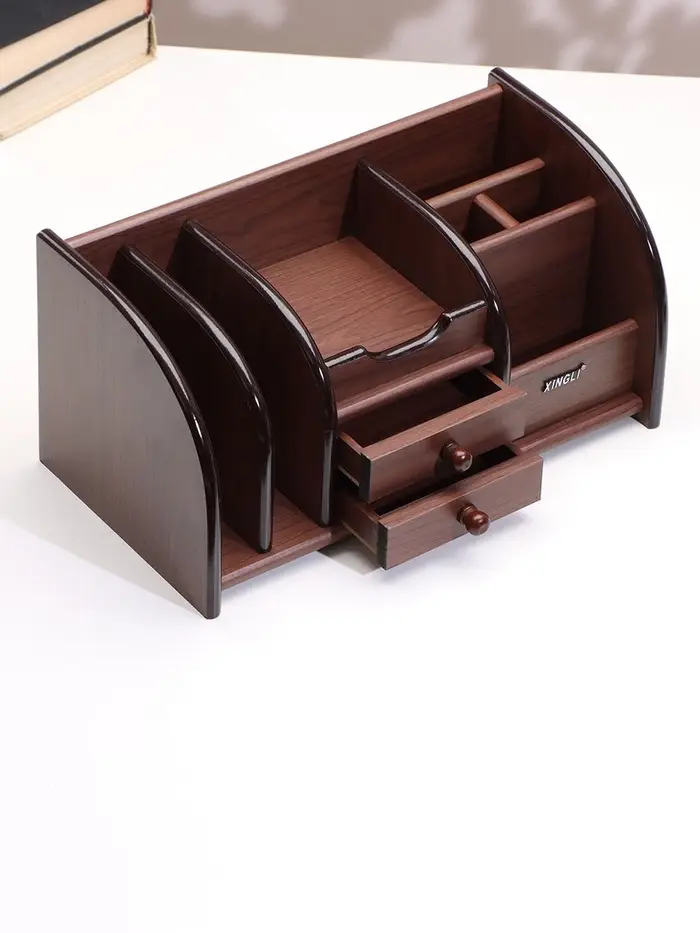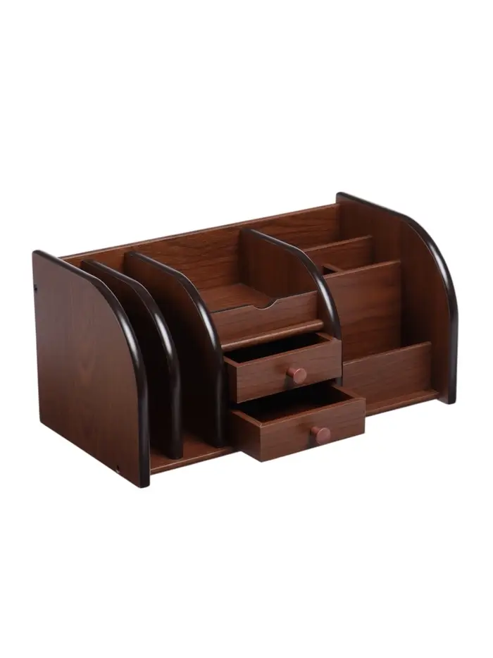 Органайзер 7 секций, 2 выдвижных ящика, серия Орех с кантом темным, 16×30×15 см