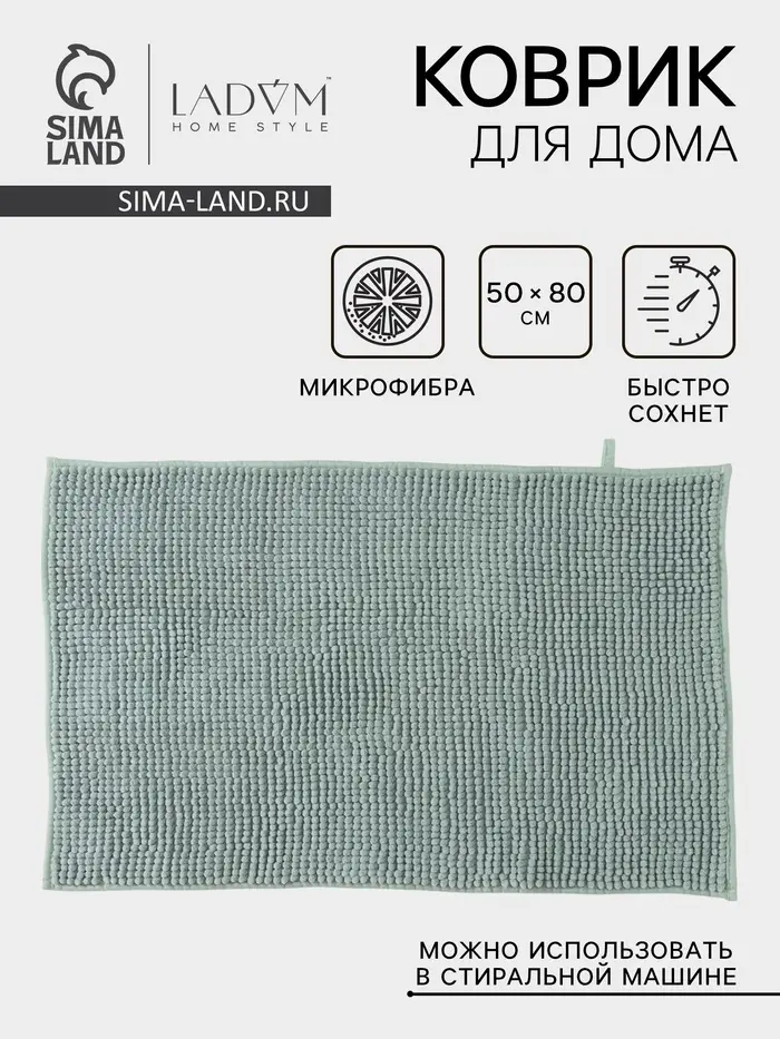 Коврик для дома LaDо́m, букли, плотность 1000 г, 50×80 см, мятный