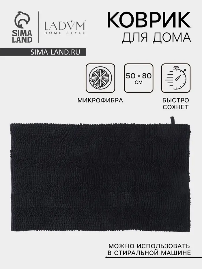 Коврик для дома LaDо́m, букли, плотность 1900 г, 50×80 см, графитовый