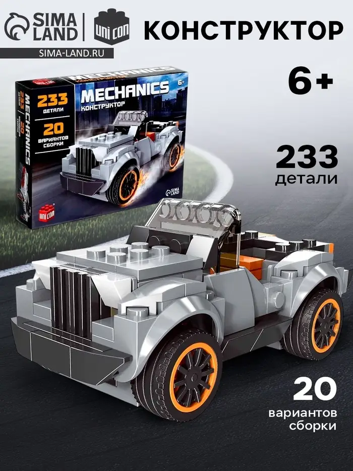 Конструктор UNICON «Кабриолет», 20 вариантов сборки, 233 детали