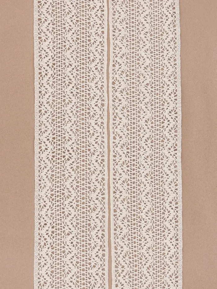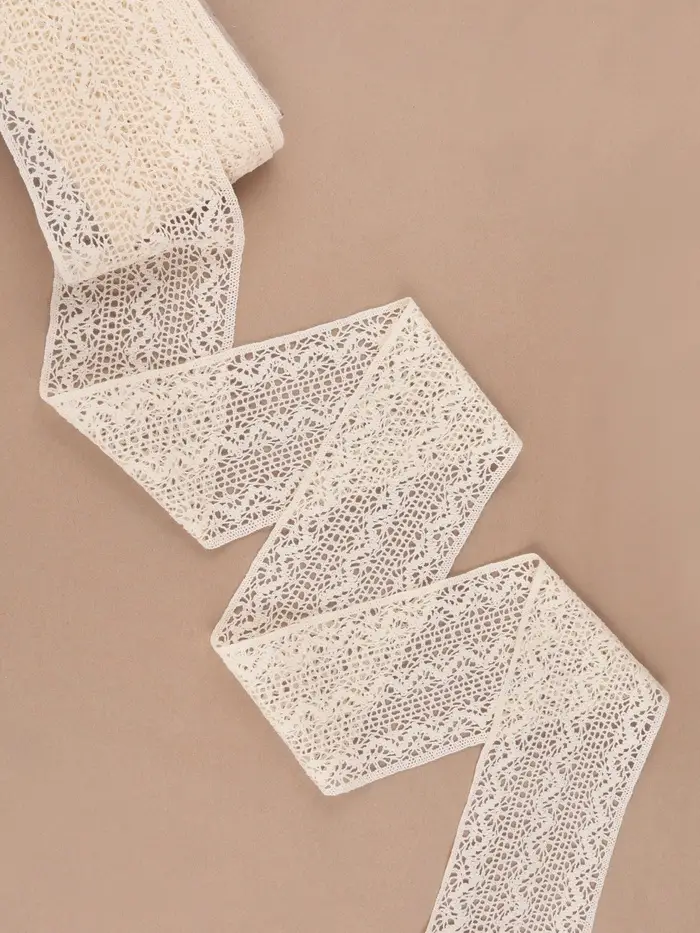 Элегантное вязаное кружево бежевого цвета идеально подходит для тех, кто ценит стиль и качество. Оно становится незаменимым элементом в создании уютной атмосферы любого интерьера. Используйте это кружево для декора, шитья или рукоделия, чтобы добавить тонкие нотки утонченности в ваш проект. Кружевные узоры легко вписываются в классические и современные дизайны, внося нежный шарм в ваше творчество.