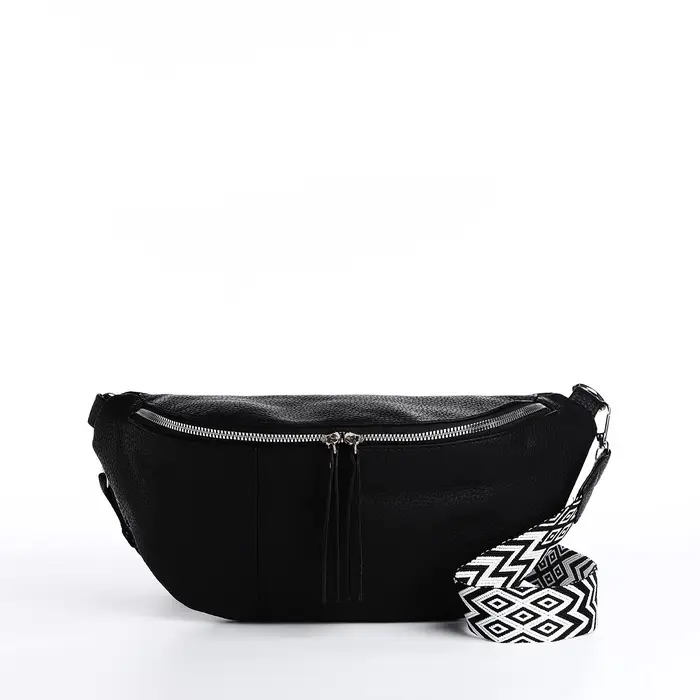 Сумка женская кросс-боди на молнии, 34×11×17 см, чёрная
