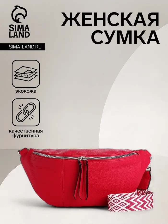 Сумка женская кросс-боди на молнии, 34×11×17 см, фуксия