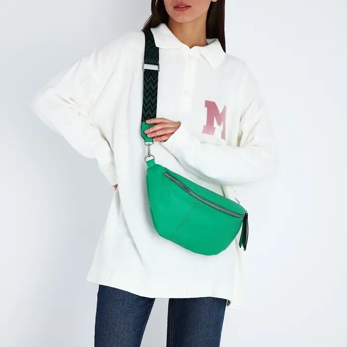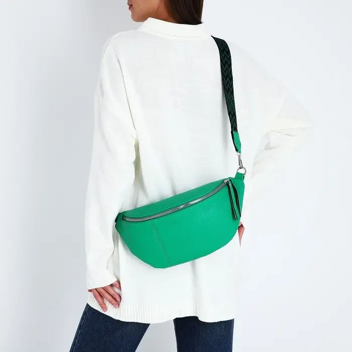 Сумка женская кросс-боди на молнии, 34×11×17 см, зелёная