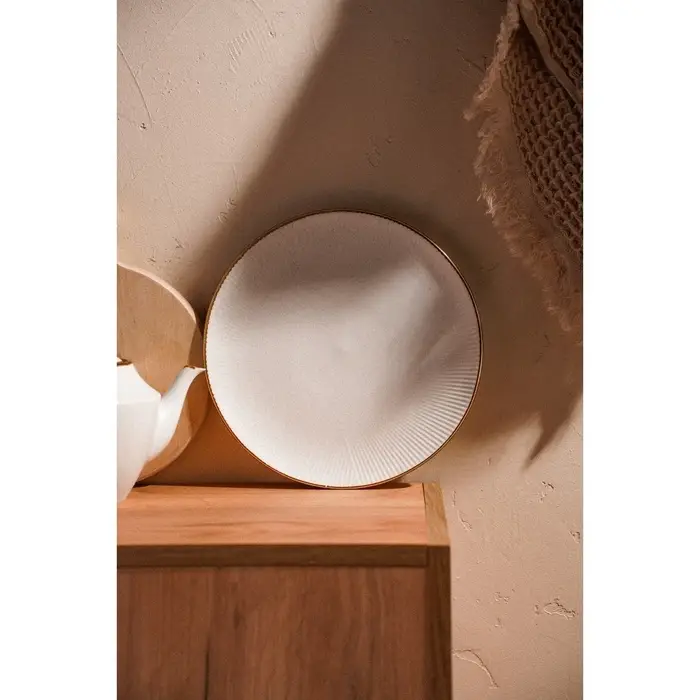 Оцените стиль и изящество, которые приносит на ваш стол тарелка из коллекции «Волна в камне». Этот уникальный предмет посуды диаметром 25,5 см станет ярким акцентом в любом интерьере благодаря своему минималистичному, но запоминающемуся дизайну.