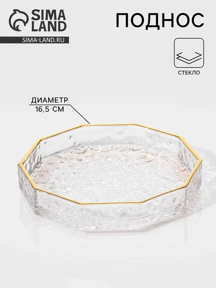 Поднос Fairyshine, 16.5×2.5 см, с золотой отводкой, стекло, прозрачный