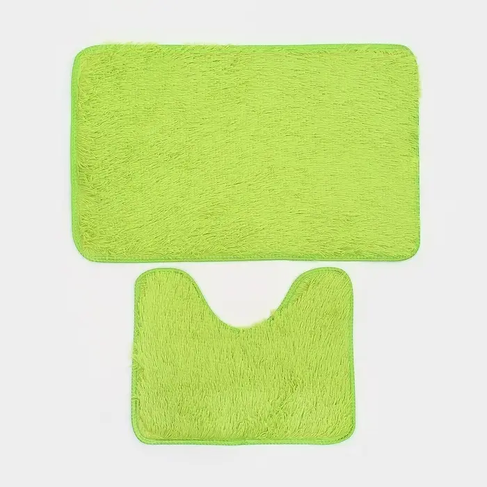 Коврики для ванной и туалета Доляна «Пушистик», 2 шт.: 40×50 см, 50×80 см, цвет зелёный
