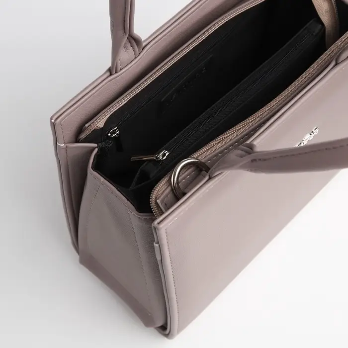 Материал из искусственной кожи делает уход простым, а сумку — долговечной. Внутреннее отделение надёжно закрывается на молнию. Благодаря сбалансированным пропорциям тоут удобно носить как в руке, так и на плече, освобождая руки для других задач. Это выбор для тех, кто ценит лаконичность, порядок и функциональность в каждой детали.