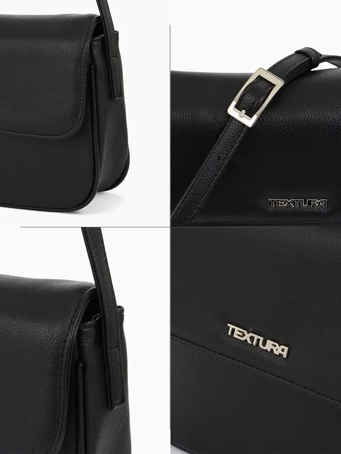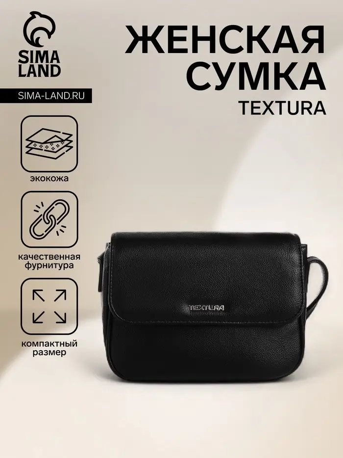 Сумка женская мессенджер TEXTURA на магните, 25×7.5×19 см, чёрный