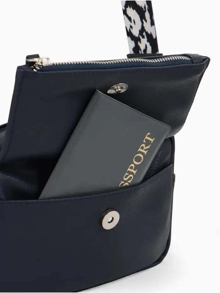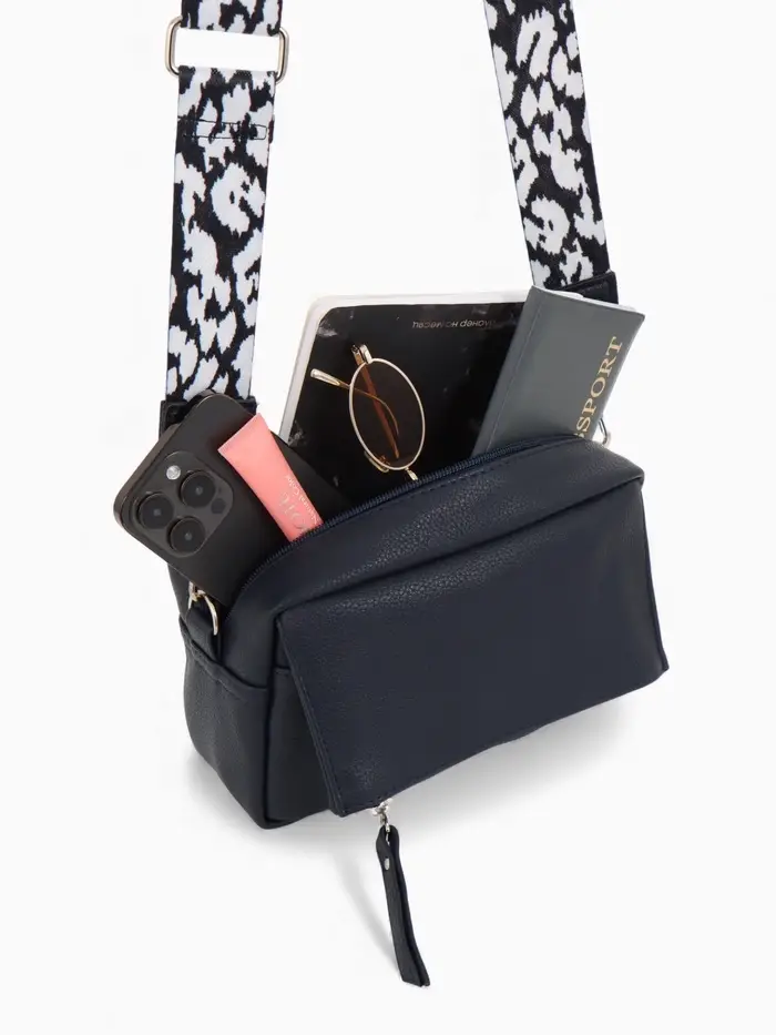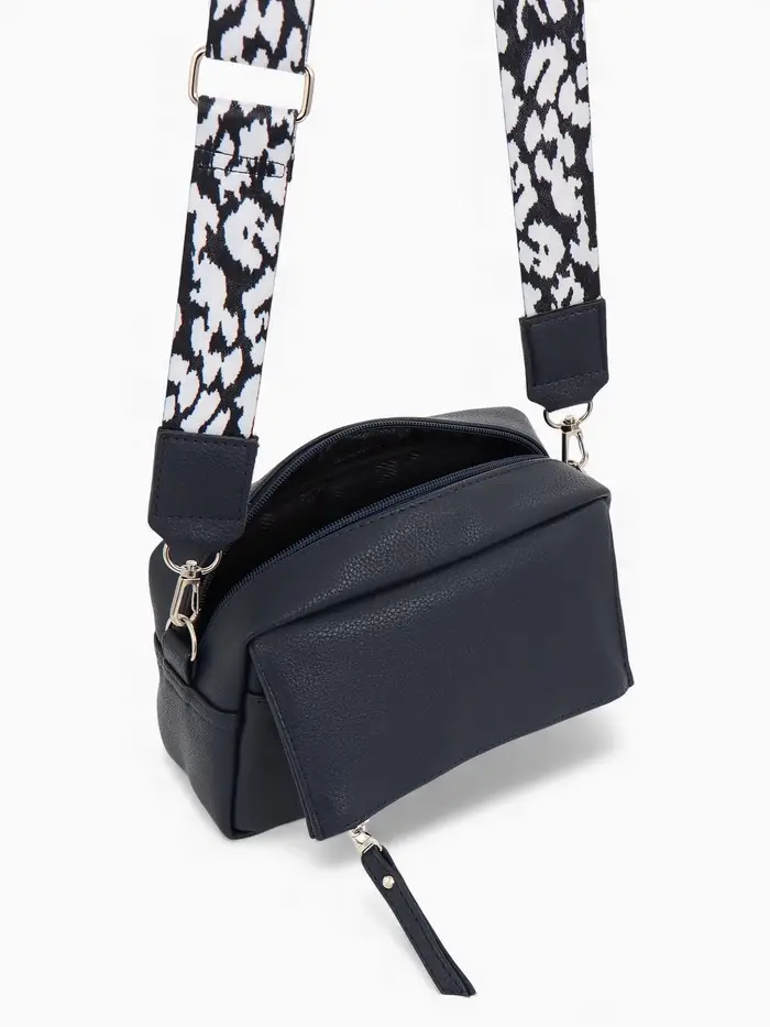 Эта синяя кросс-боди сумка из искусственной кожи создана для вашего ритма жизни. Компактный, но вместительный формат легко организует всё необходимое для города, прогулки или встречи с друзьями. Мягкий полукаркас держит форму, а регулируемый ремешок с серебряной фурнитурой позволяет носить её на плече или через плечо с комфортом.