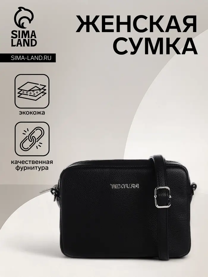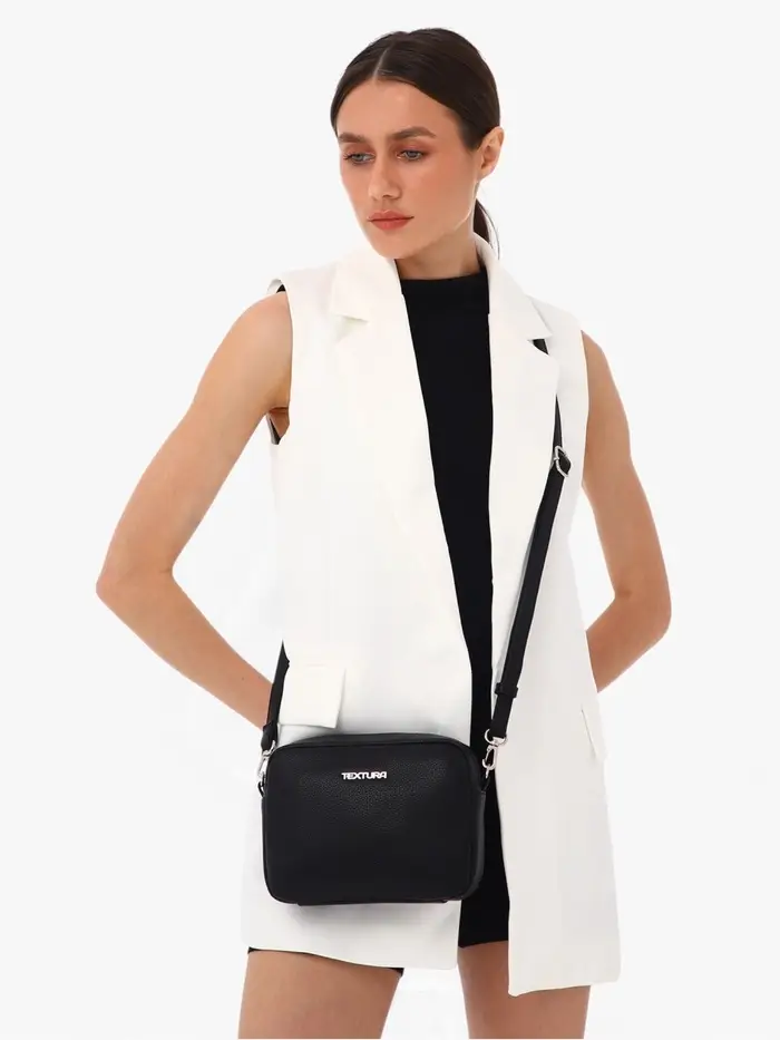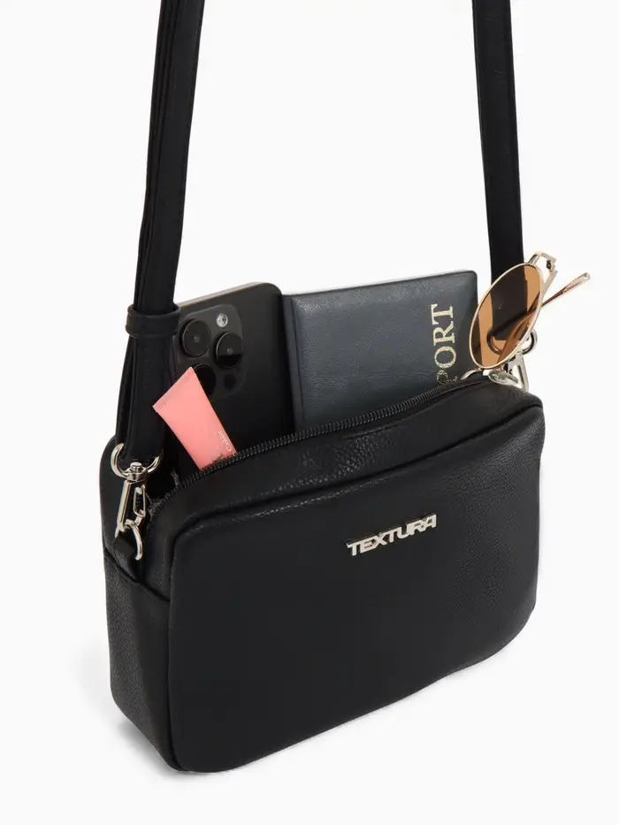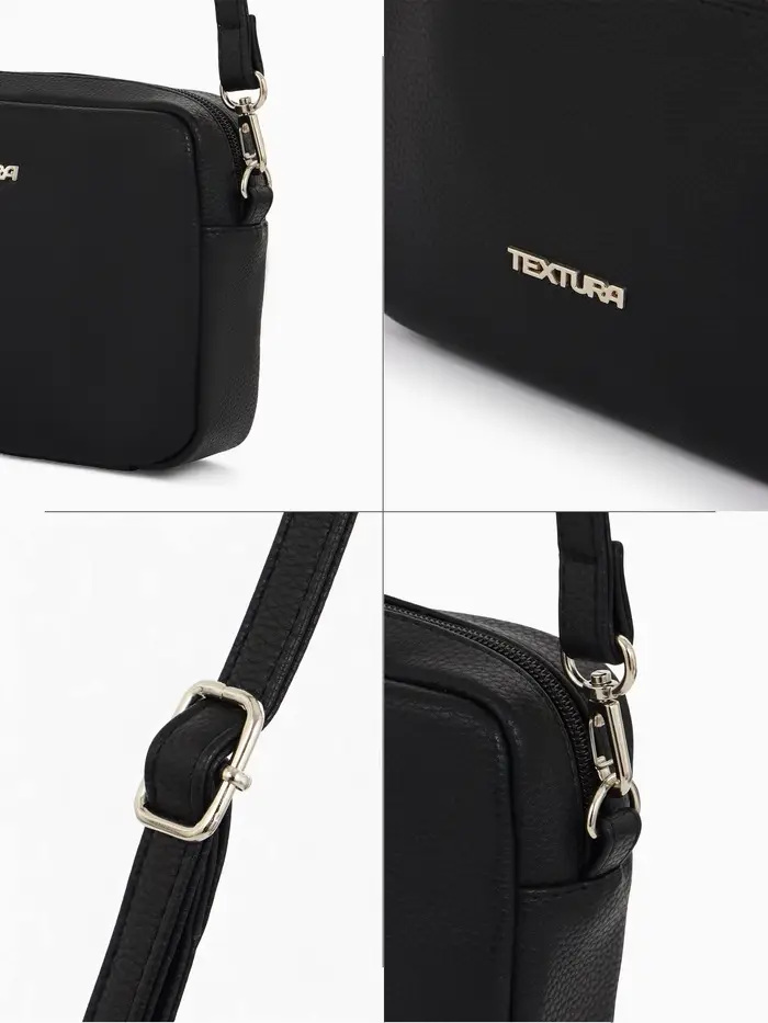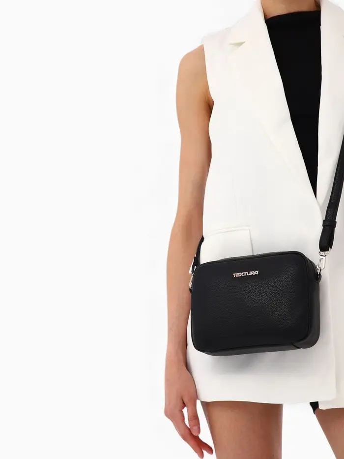 Сумка женская кросс-боди TEXTURA на молнии, 20×7×15 см, чёрная
