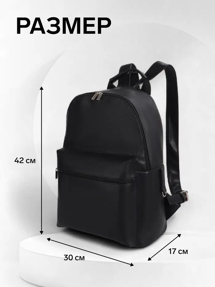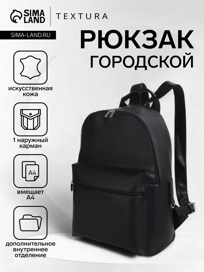 Рюкзак городской TEXTURA на молнии с карманом, размер 30×17×42 см, чёрный