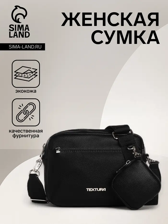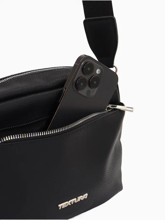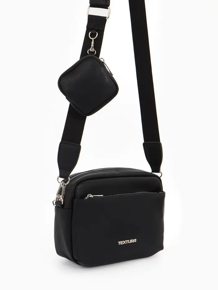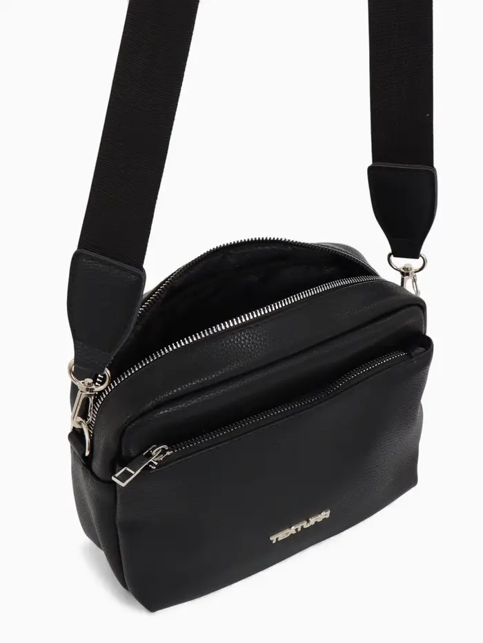 Сумка женская кросс-боди TEXTURA на молнии, 16×7×17 см, чёрная