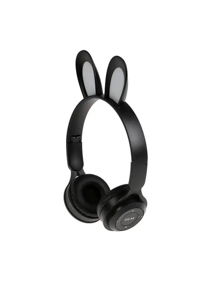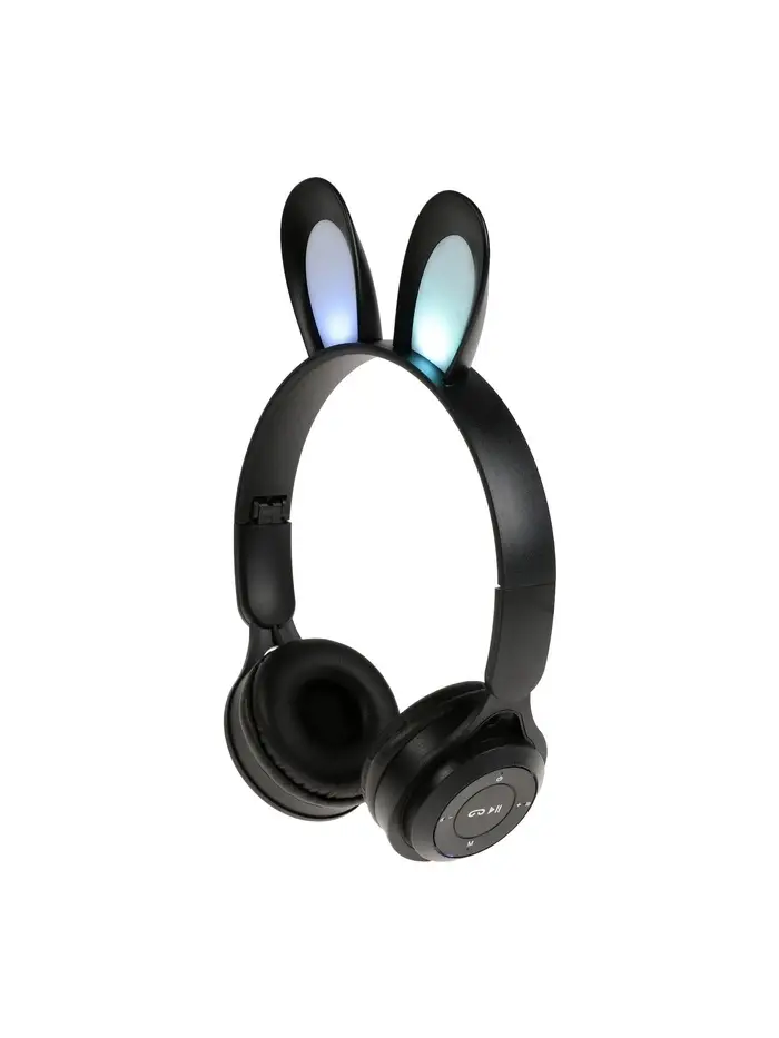 Наушники детские, беспроводные, накладные, с ушками зайца, Y08R, Bluetooth 5.1, с микрофоном, с подсветкой, 400 мАч, чёрные
