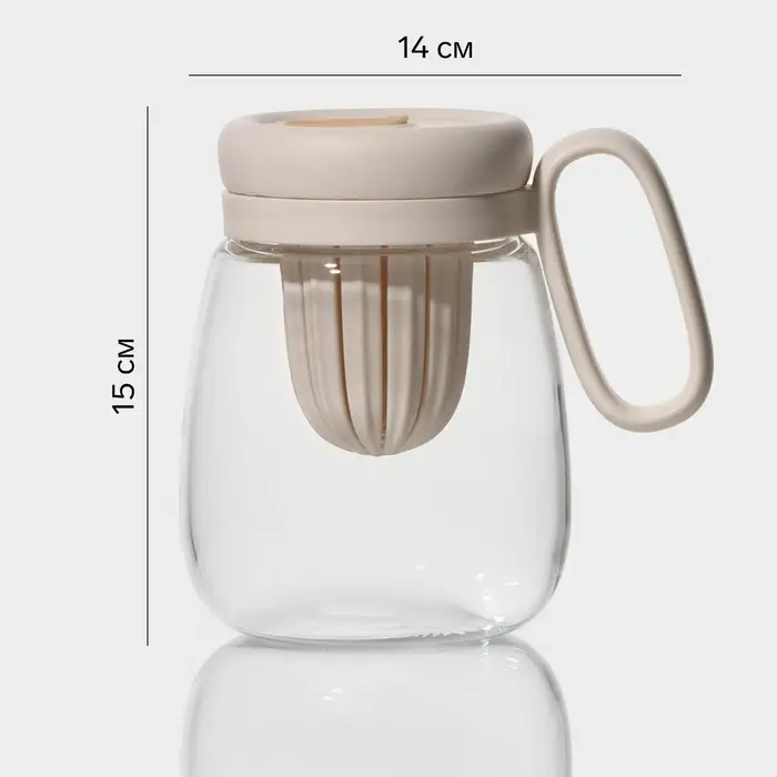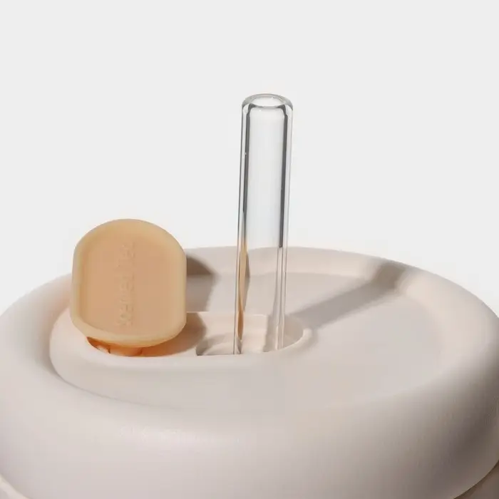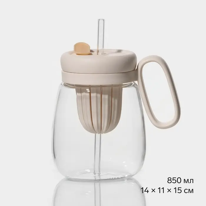 Кружка «Бьорн», 850 мл, с крышкой и трубочкой, стекло, бежевая