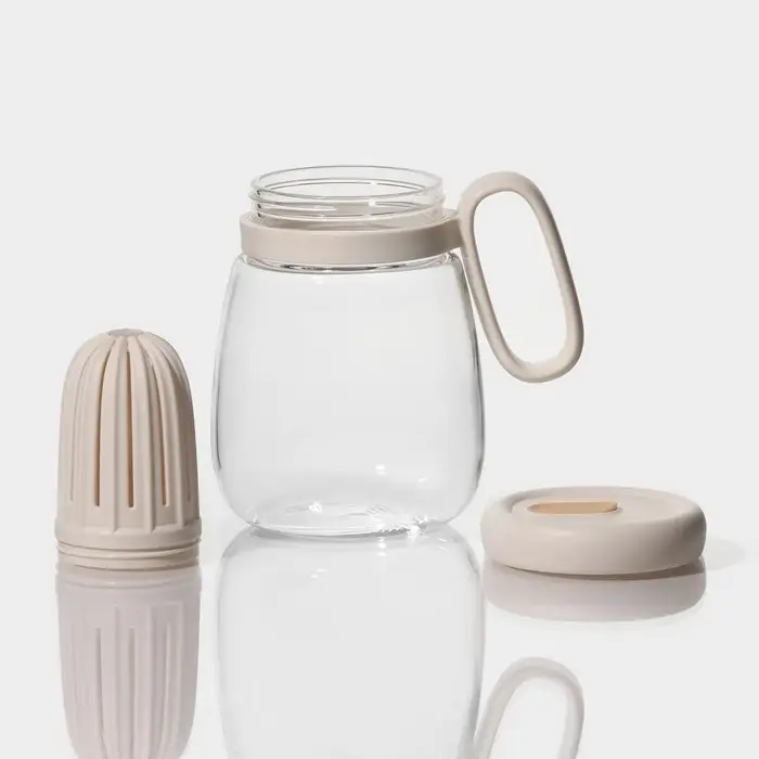 Банка с ручкой, крышкой и трубочкой очень удобна, потому что ее плотные стенки позволяют сохранять температуру напитка, она не такая хрупкая, как стакан.