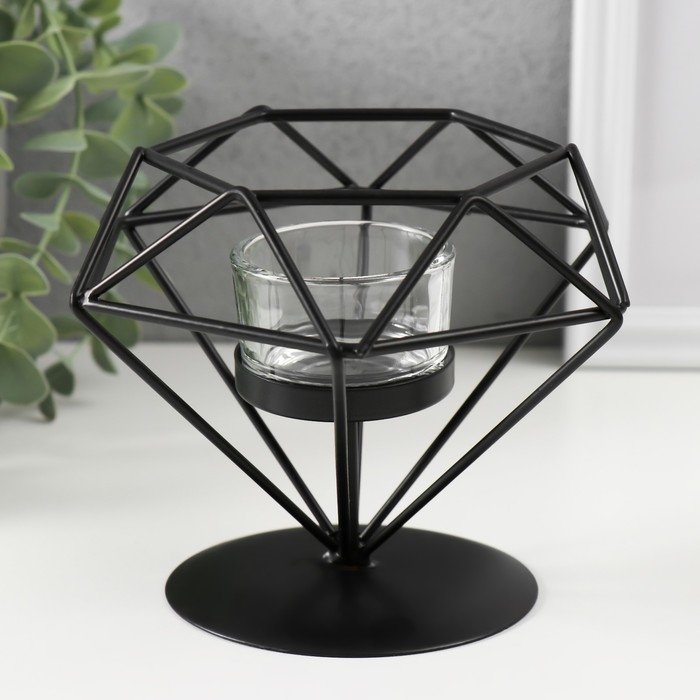 Подсвечник металл, стекло "Бриллиант" чёрный 13,5х14х12 см