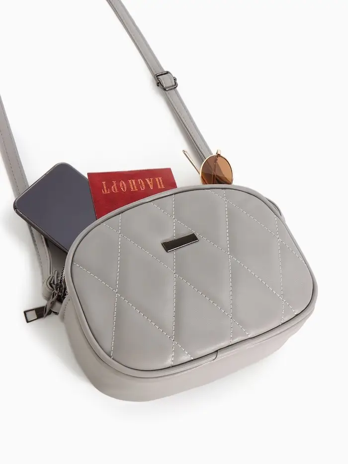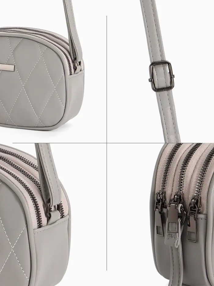 Сумка женская кросс-боди на молнии, 19×7×15 см, со стёжкой, серая