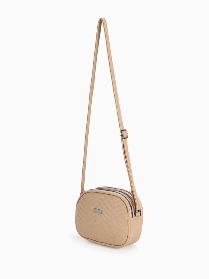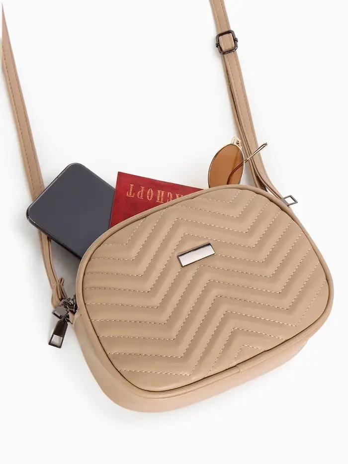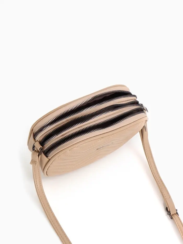 Сумка женская кросс-боди на молнии, 26×10×16 см, бежевая