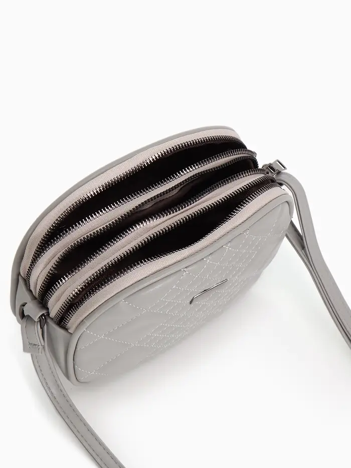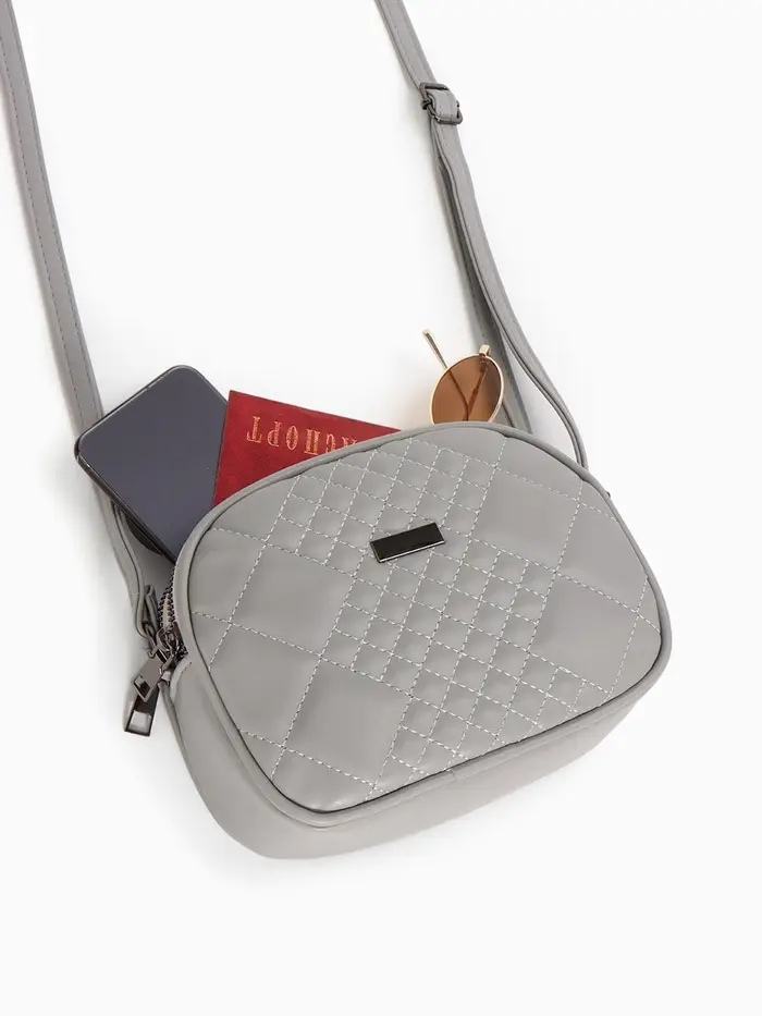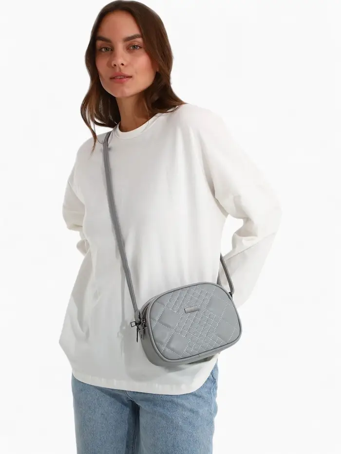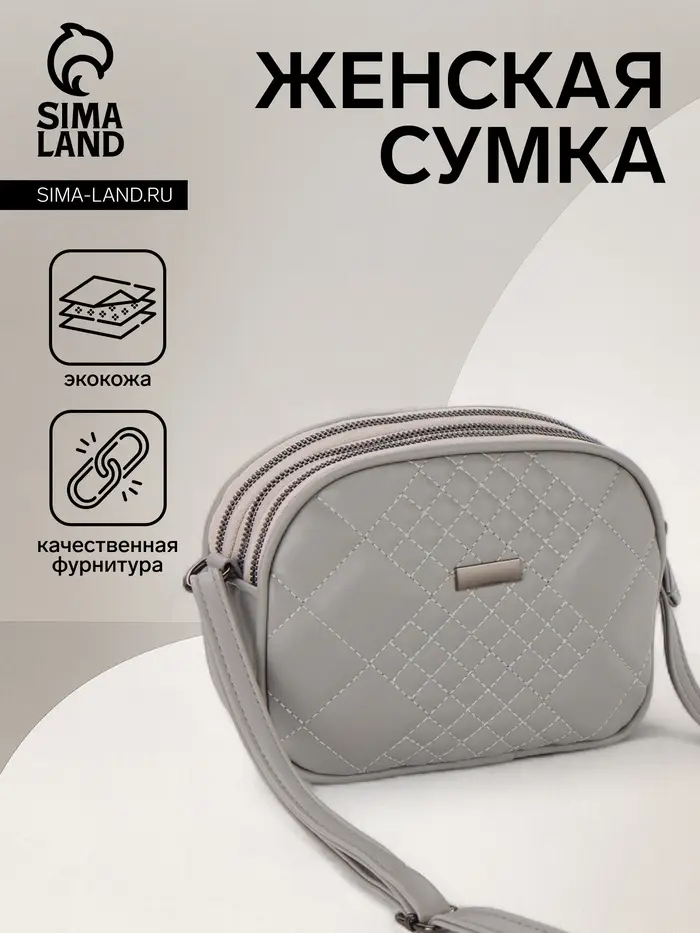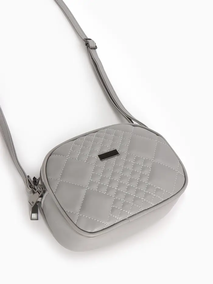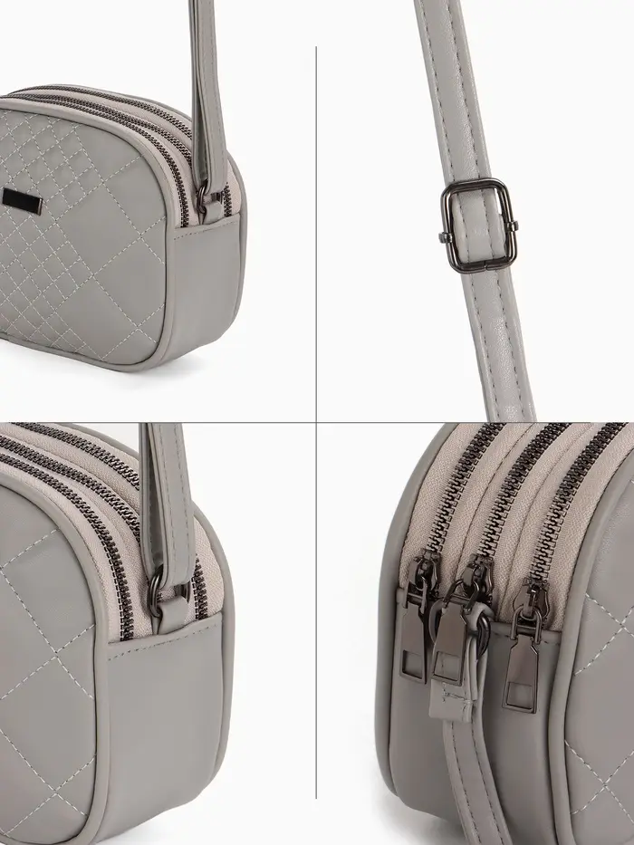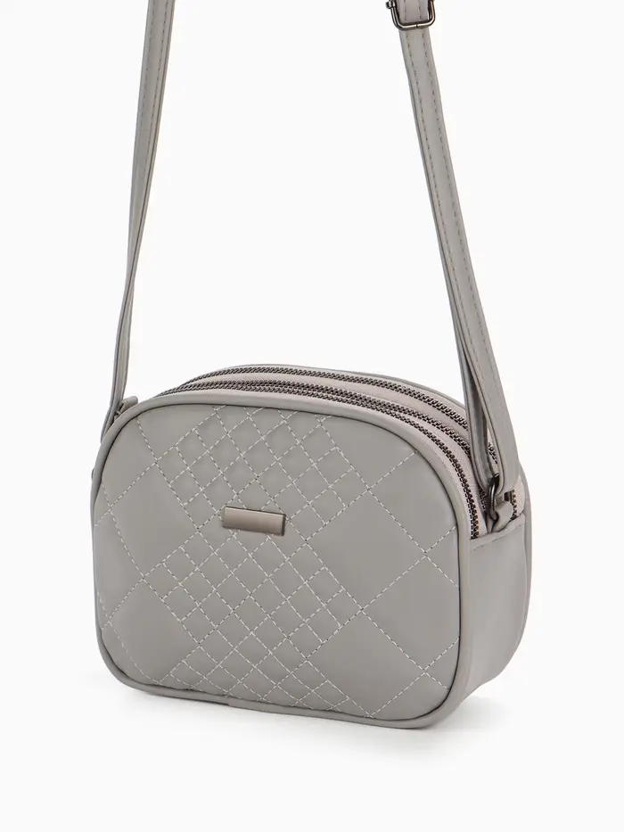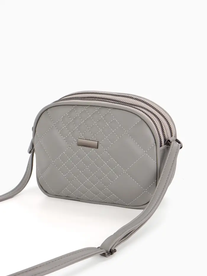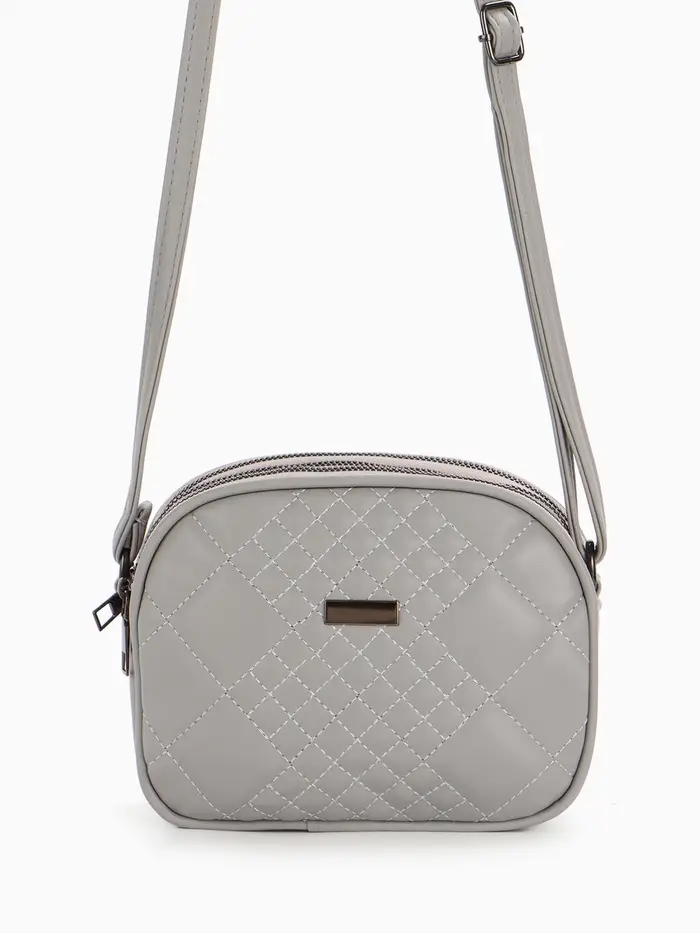 Сумка женская кросс-боди на молнии, 19×7×15 см, в клетку, серая